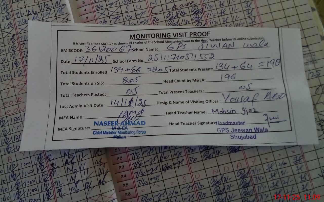| EMIS Code: 36120067 | Name of School: GPS JIWAN WALA P/O SHUJABAD | |||