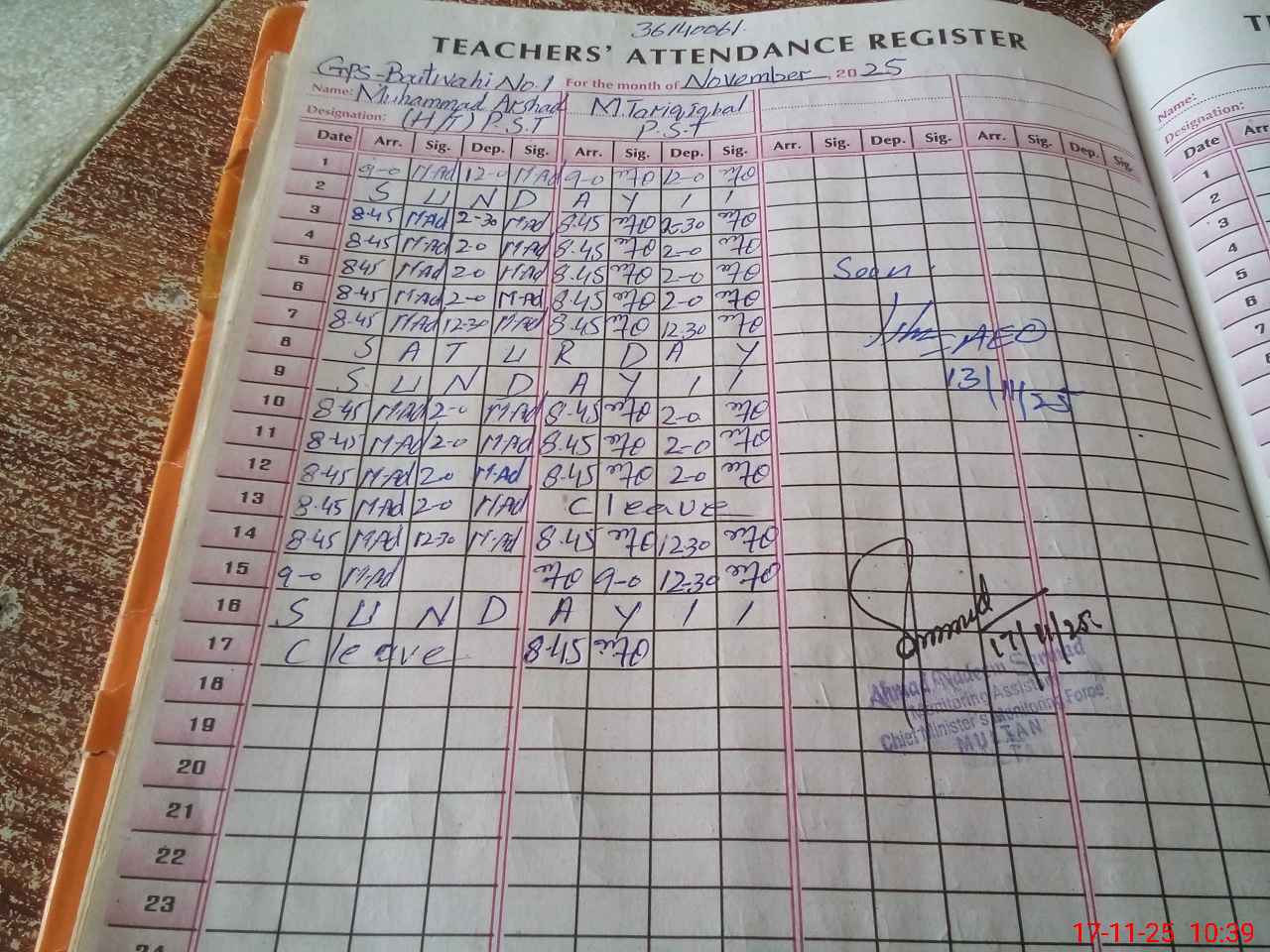 | Name: Mu**** Ar**** Designation: (School Headmaster's/Headmistress's) PST/PTC/JV Phone/Cell Number: 03**** |