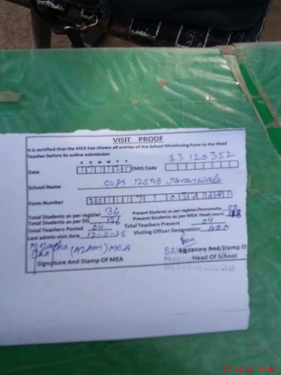 | EMIS Code: 33120352 | Name of School: GGPS 125 GARB | |||