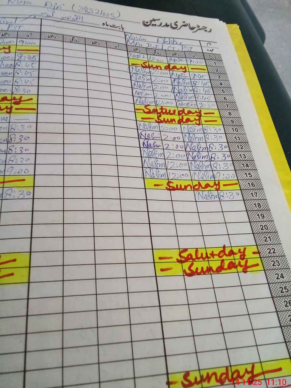 | CNIC | Full Name | Designation | R/C | Absence During Last Calender Month |