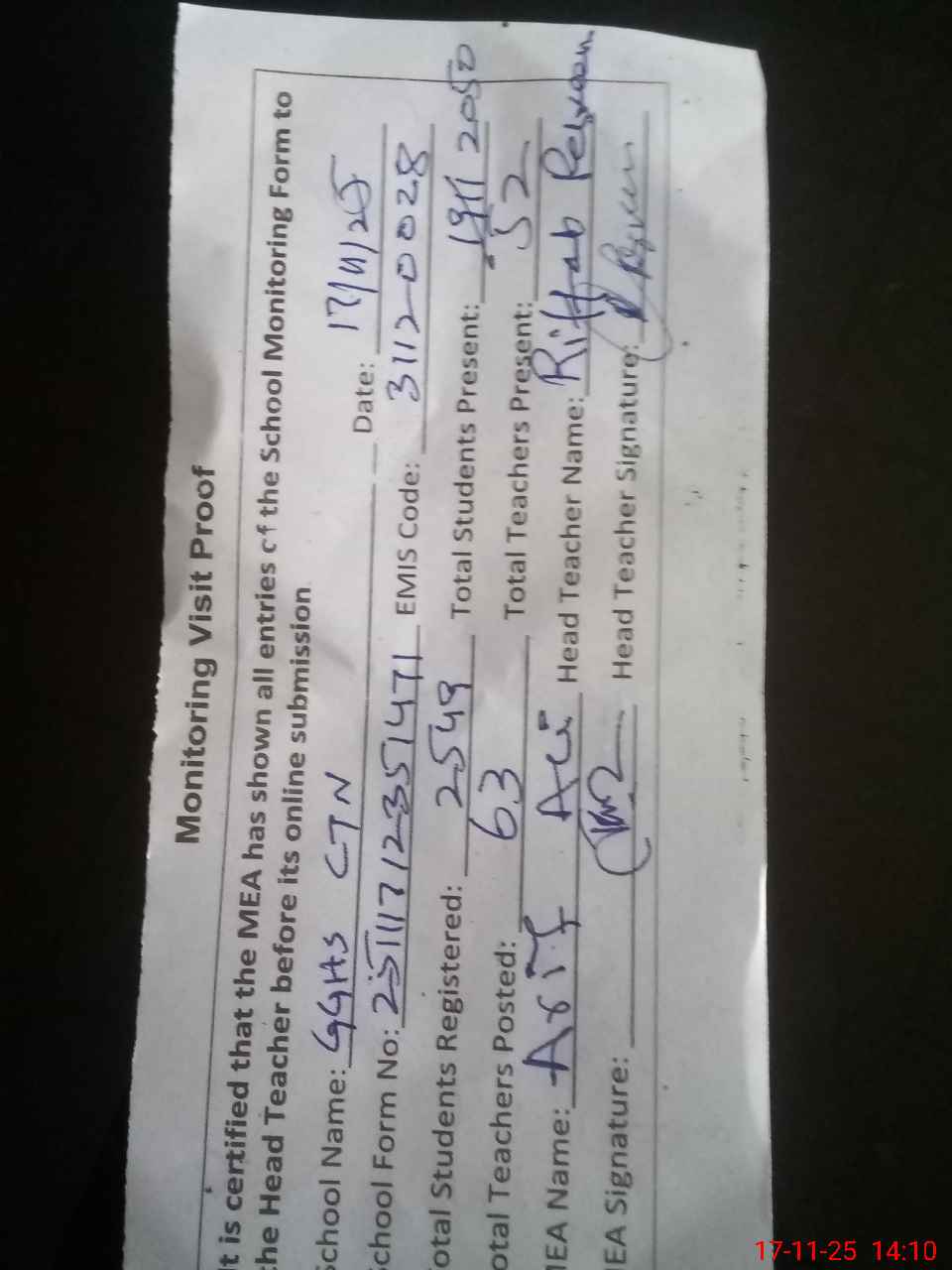 | Name: sh**** wa**** Designation: (School Headmaster's/Headmistress's) sst Phone/Cell Number: 03**** |