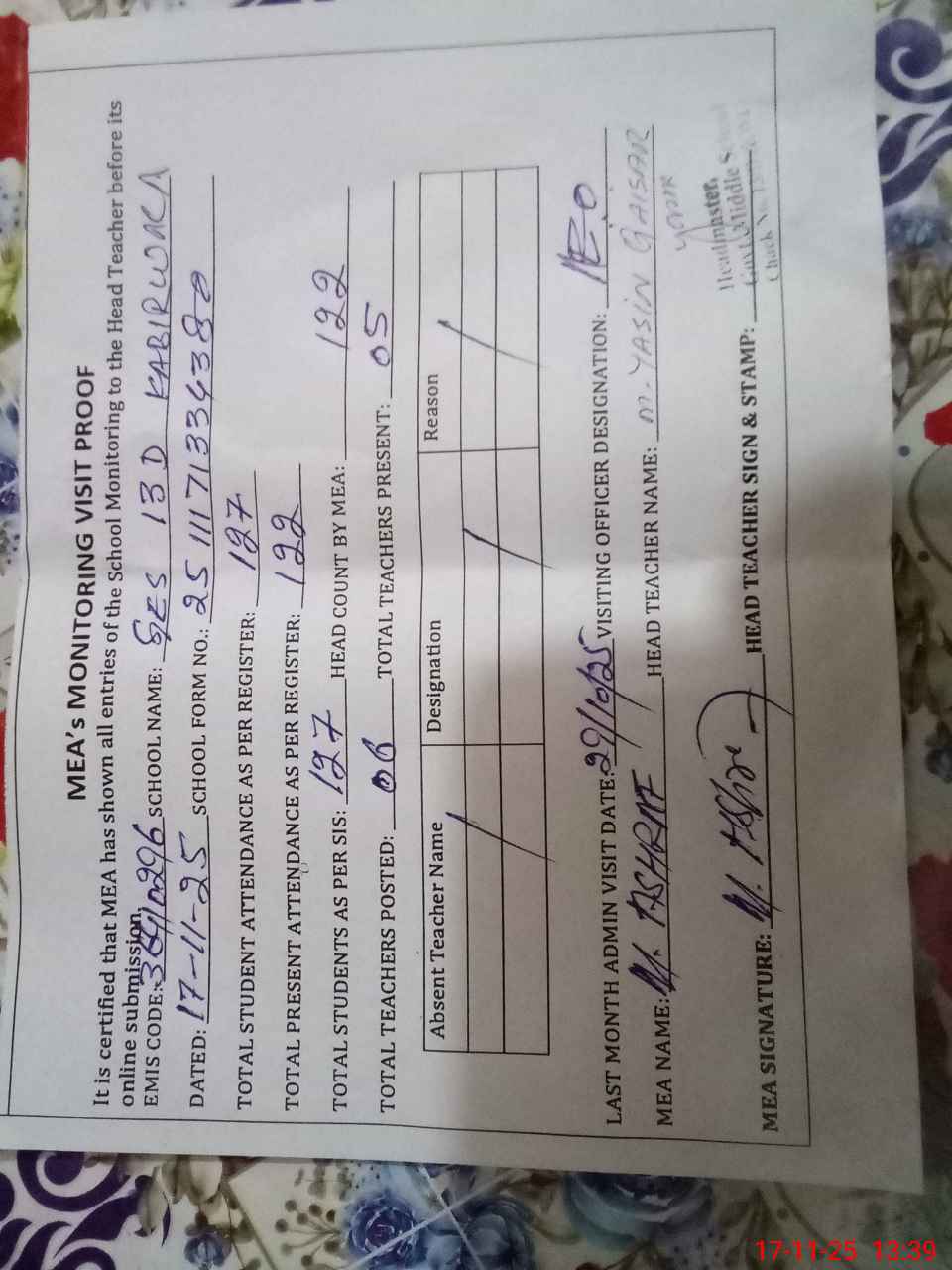 | EMIS Code: 36410296 | Name of School: GES 13/D, P/O DARKHANA, ABDUL HAKIM | |||