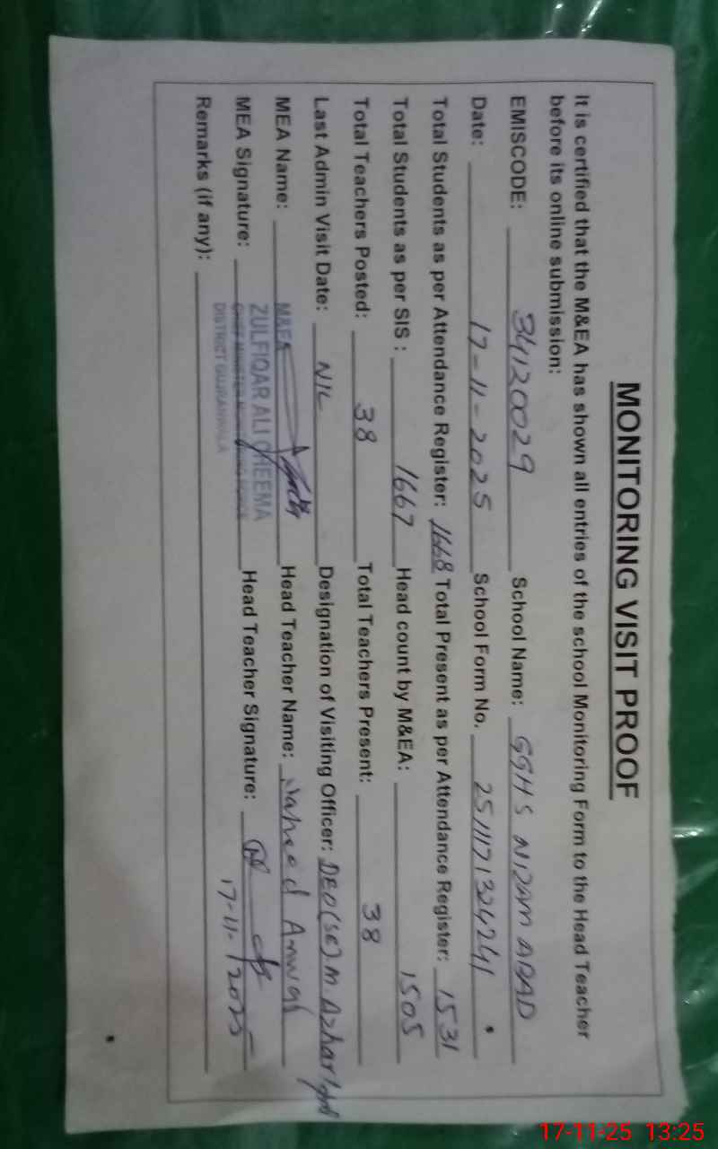 | EMIS Code: 34120029 | Name of School: GGHS NIZAM ABAD | |||