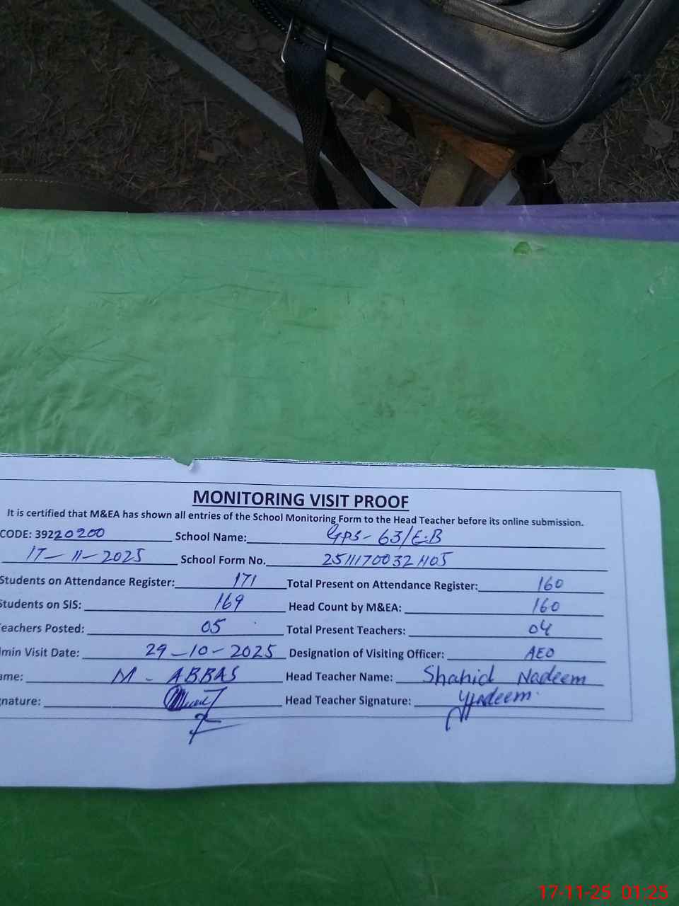 | EMIS Code: 39220200 | Name of School: GPS 63 EB | |||