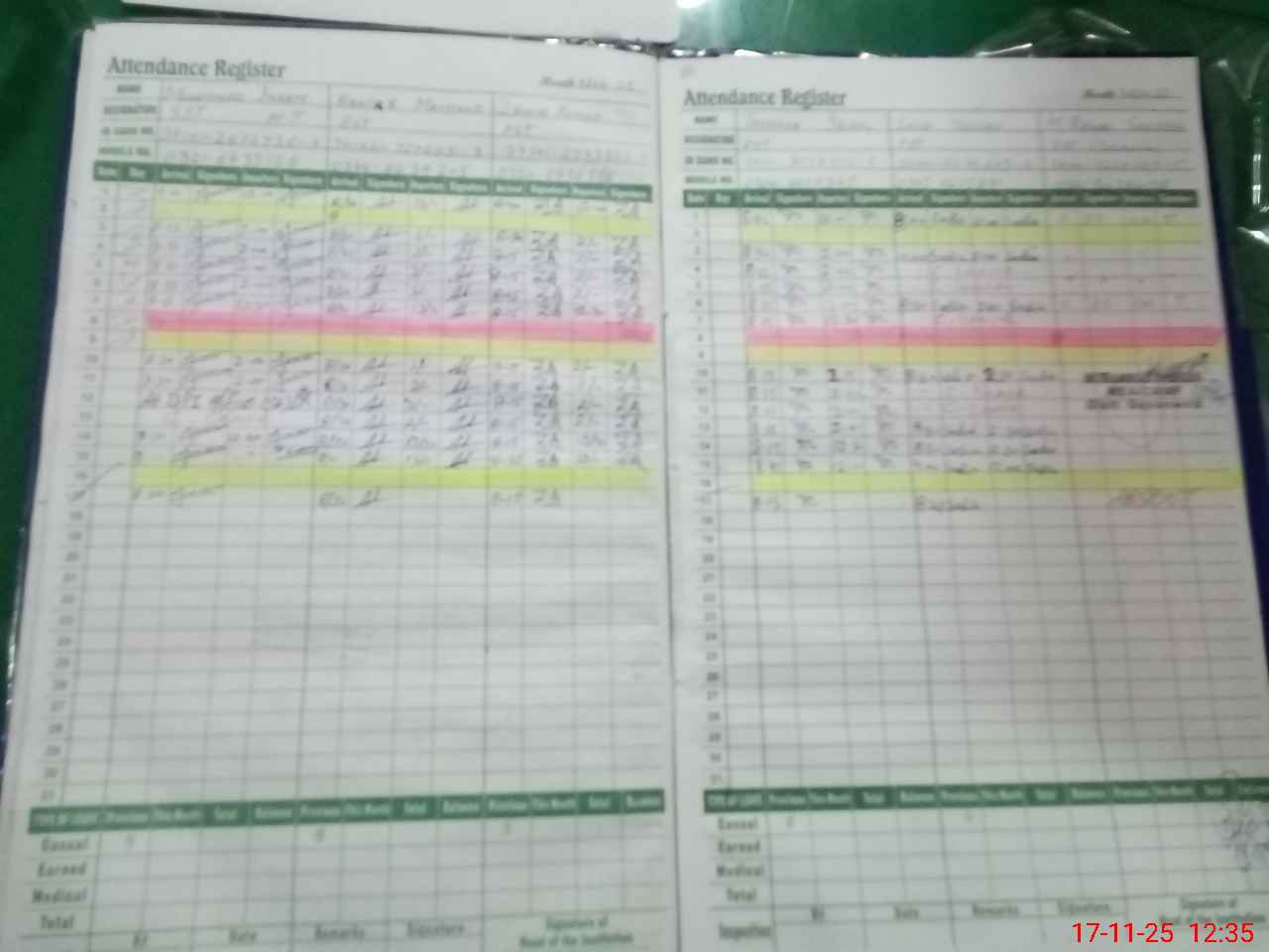 | CNIC | Full Name | Designation | R/C | Absence During Last Calender Month |