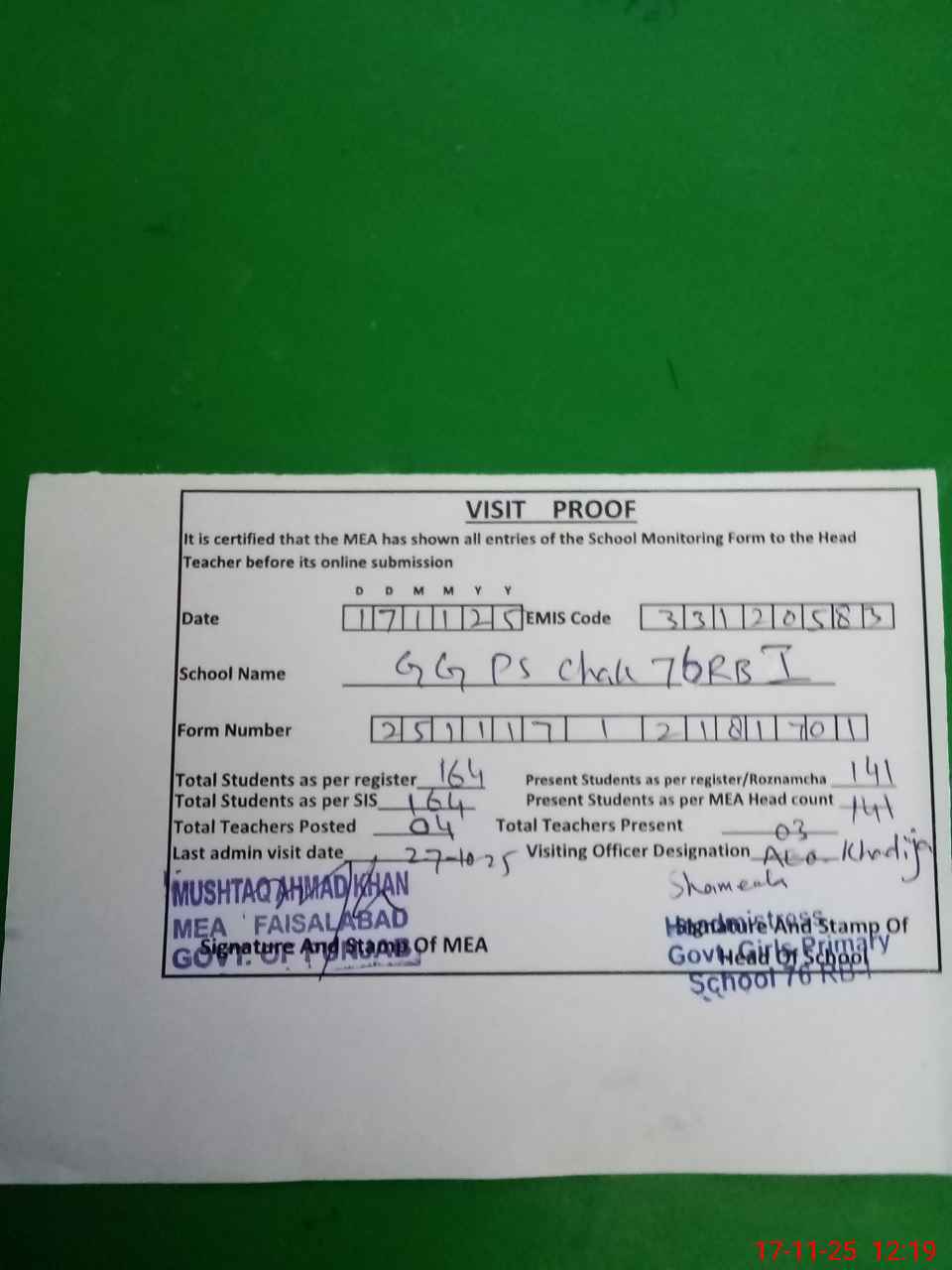 | EMIS Code: 33120583 | Name of School: GGPS 76/RB-I | |||