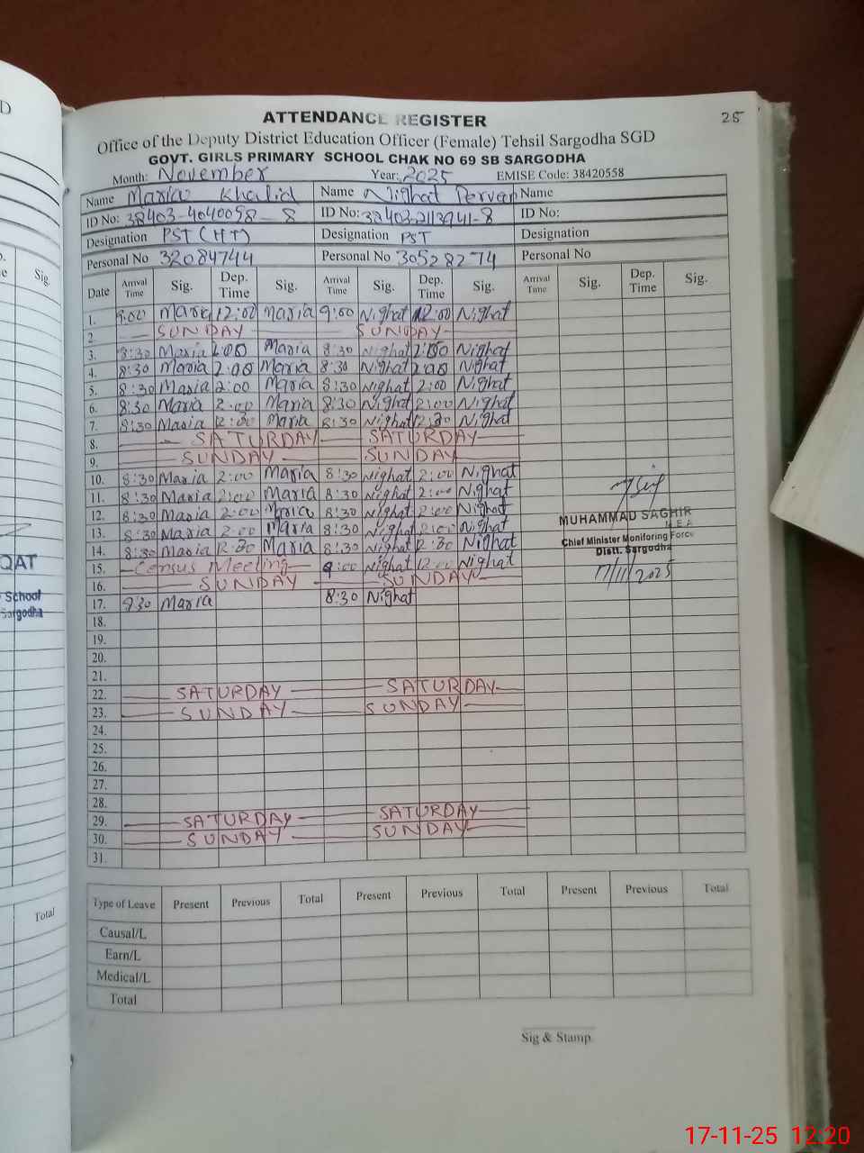 | Monitoring Date: 17-11-2025 | Start Time: 17-11-2025 12:15 PM | End Time: 17-11-2025 12:41 PM | Name of MEA: MU**** SA**** | |