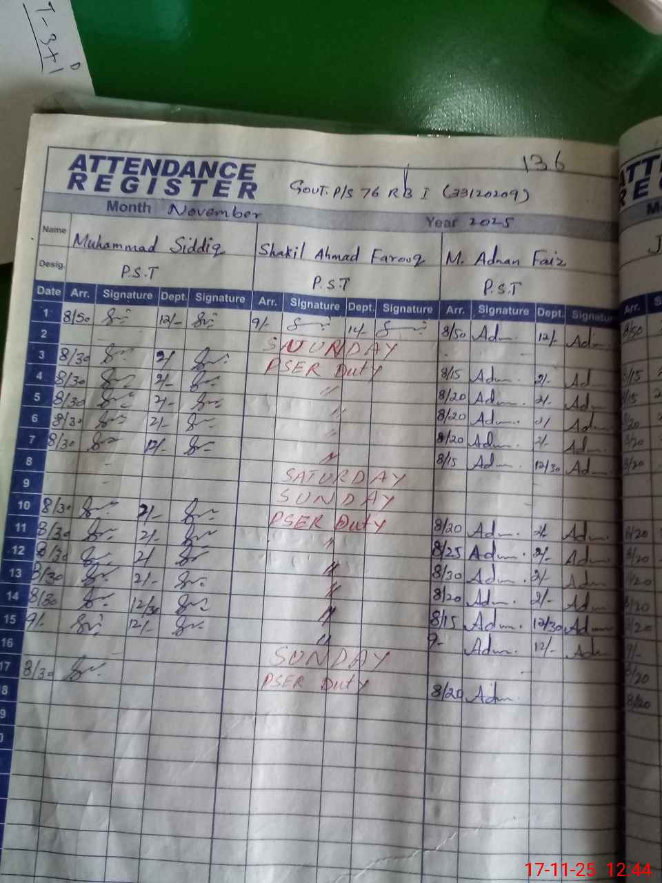 | Name: MU**** SI**** Designation: (School Headmaster's/Headmistress's) PST Phone/Cell Number: 03**** |