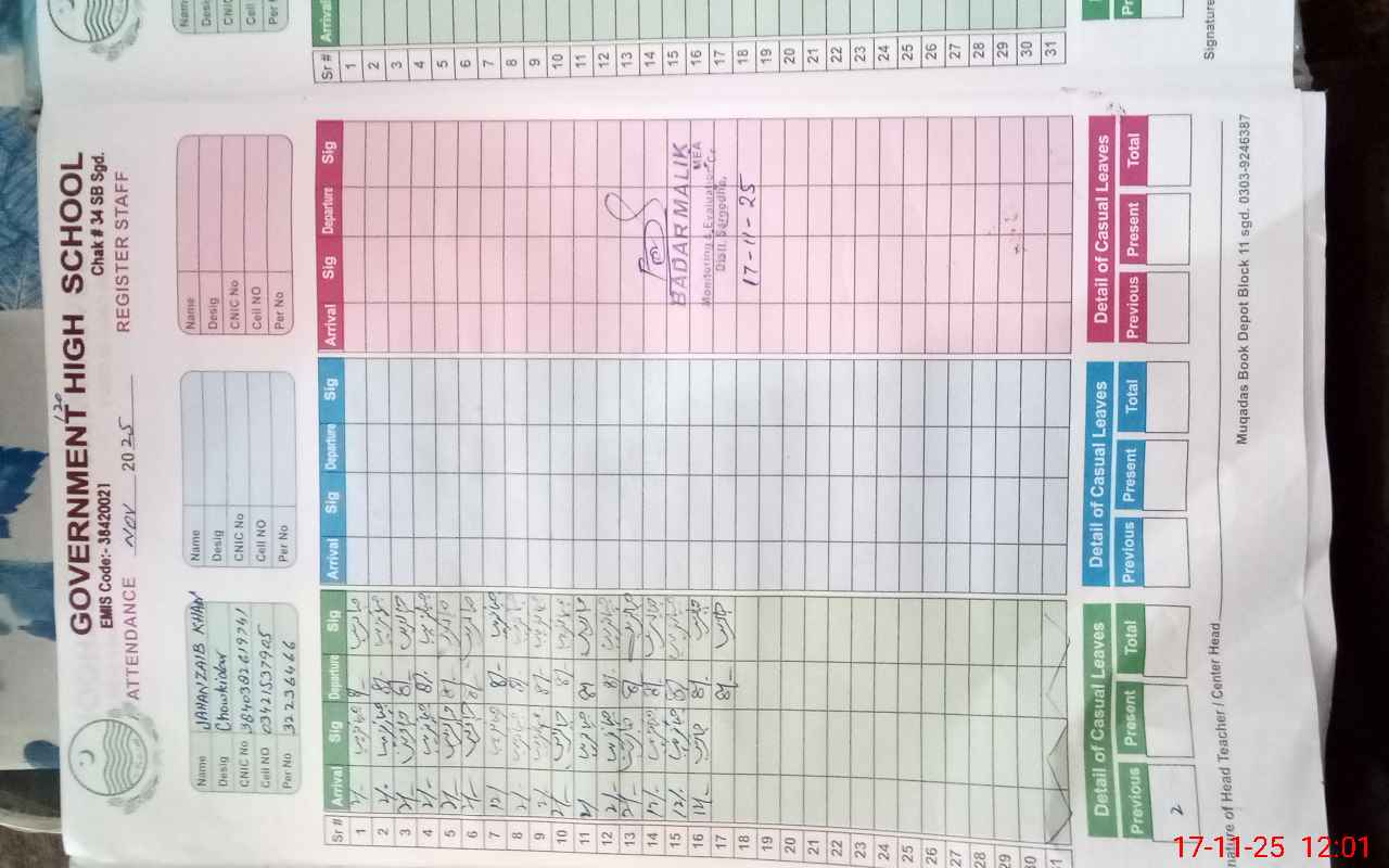 | Name: Us**** Al**** Designation: (School Headmaster's/Headmistress's) Incharge HM Phone/Cell Number: 03**** |