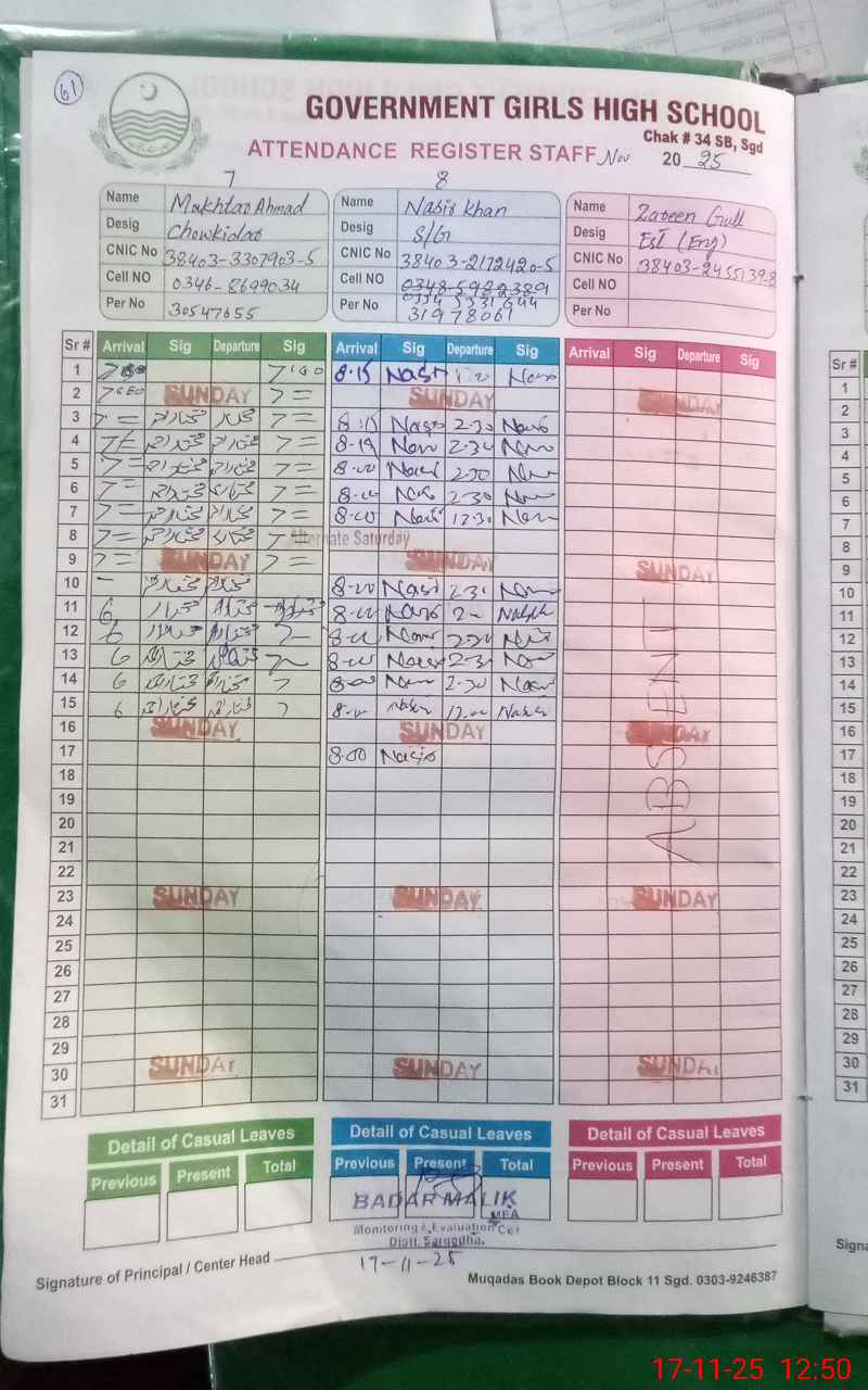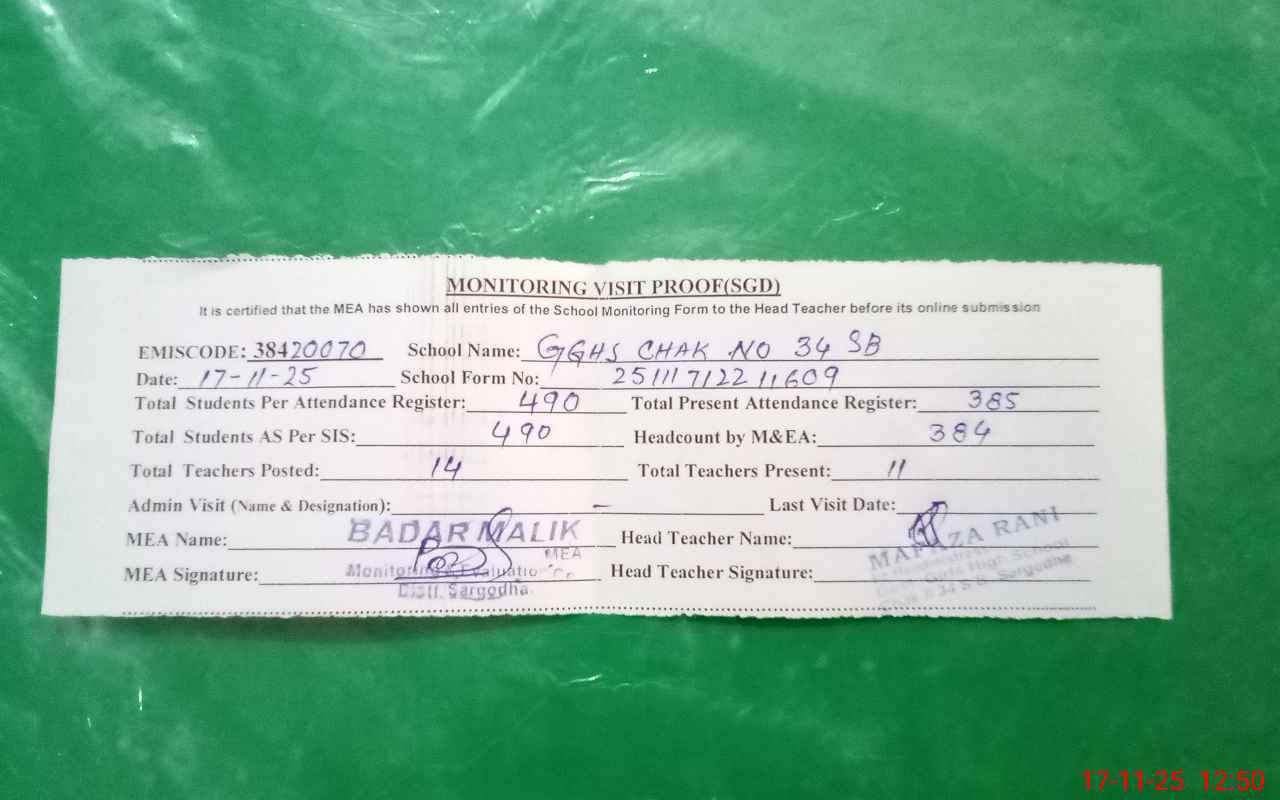 | EMIS Code: 38420070 | Name of School: GGHS CHAK NO. 34 SB SARGODHA | |||