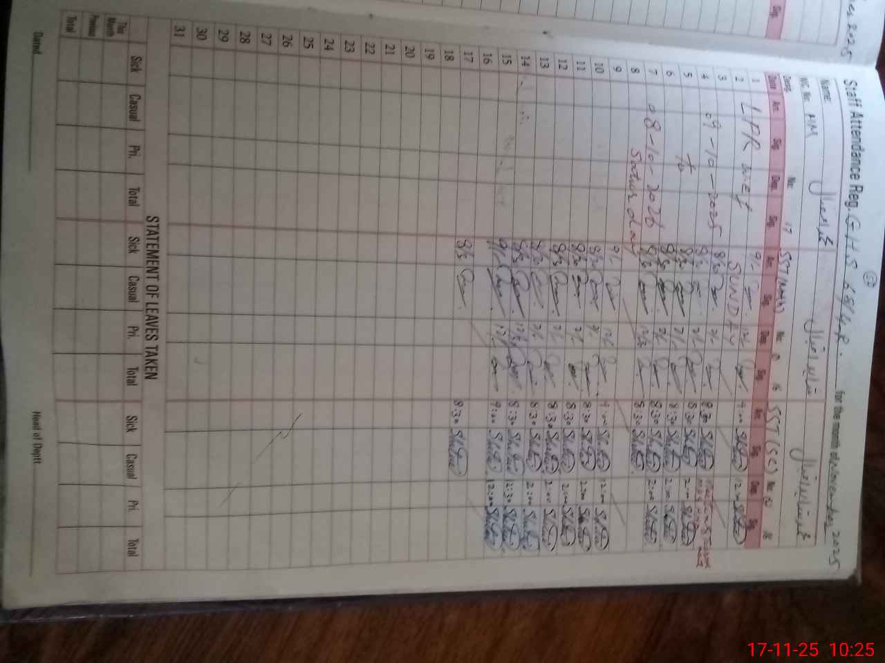 | CNIC | Full Name | Designation | R/C | Absence During Last Calender Month |