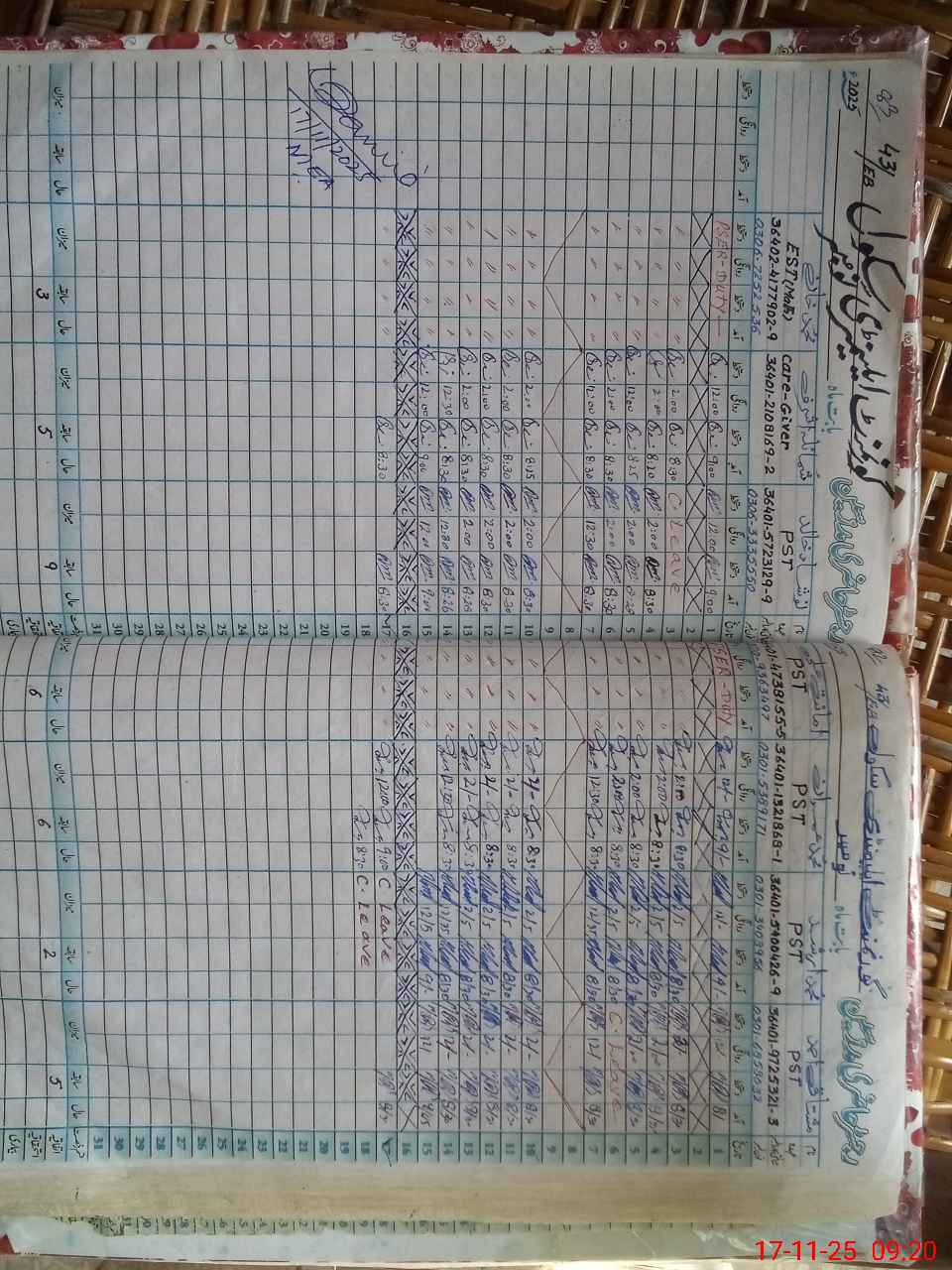 | CNIC | Full Name | Designation | R/C | Absence during last cal. month |