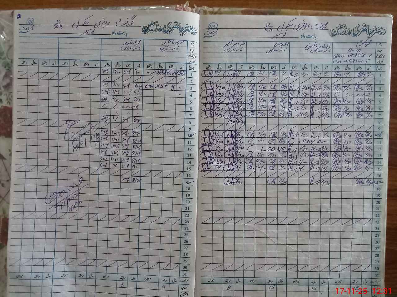 | CNIC | Full Name | Designation | R/C | Absence During Last Calender Month |