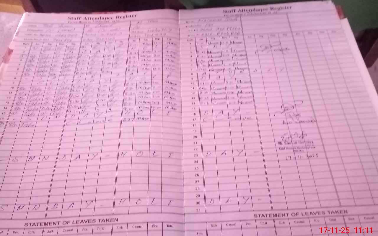 | CNIC | Full Name | Designation | R/C | Absence During Last Calender Month |