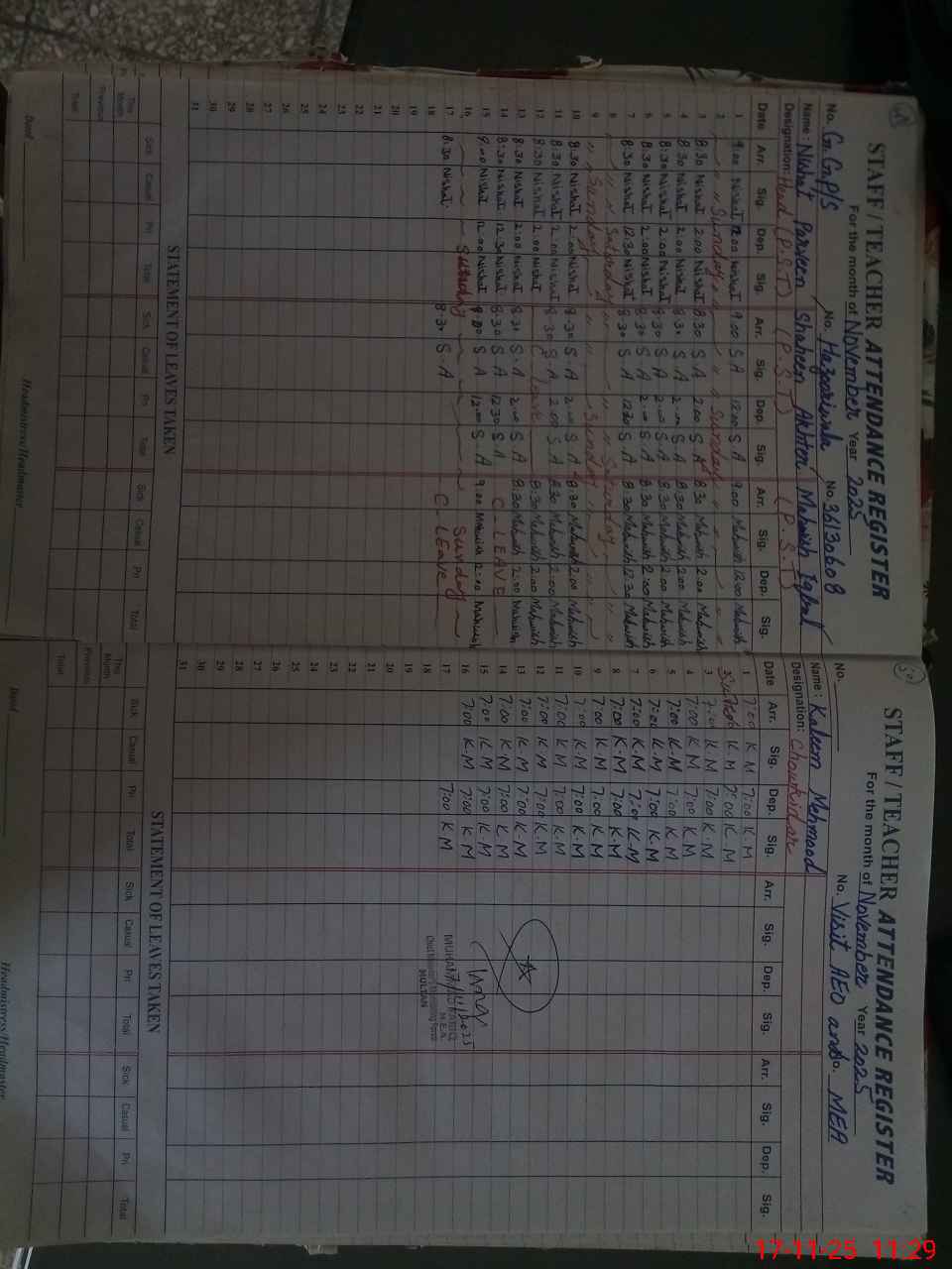 | Remarks (Use Separate Page if Required): PST MEHWISH IQBAL MARKED ON LEAVE BUT HER SANCTIONED LEAVE RECORD NOT AVAILABLE THERE IS SOME DIFFERENCE IN BETWEEN SIS ROZNAMCHA AND STUDENTS ATTENDENCE REGISTERS | |||||