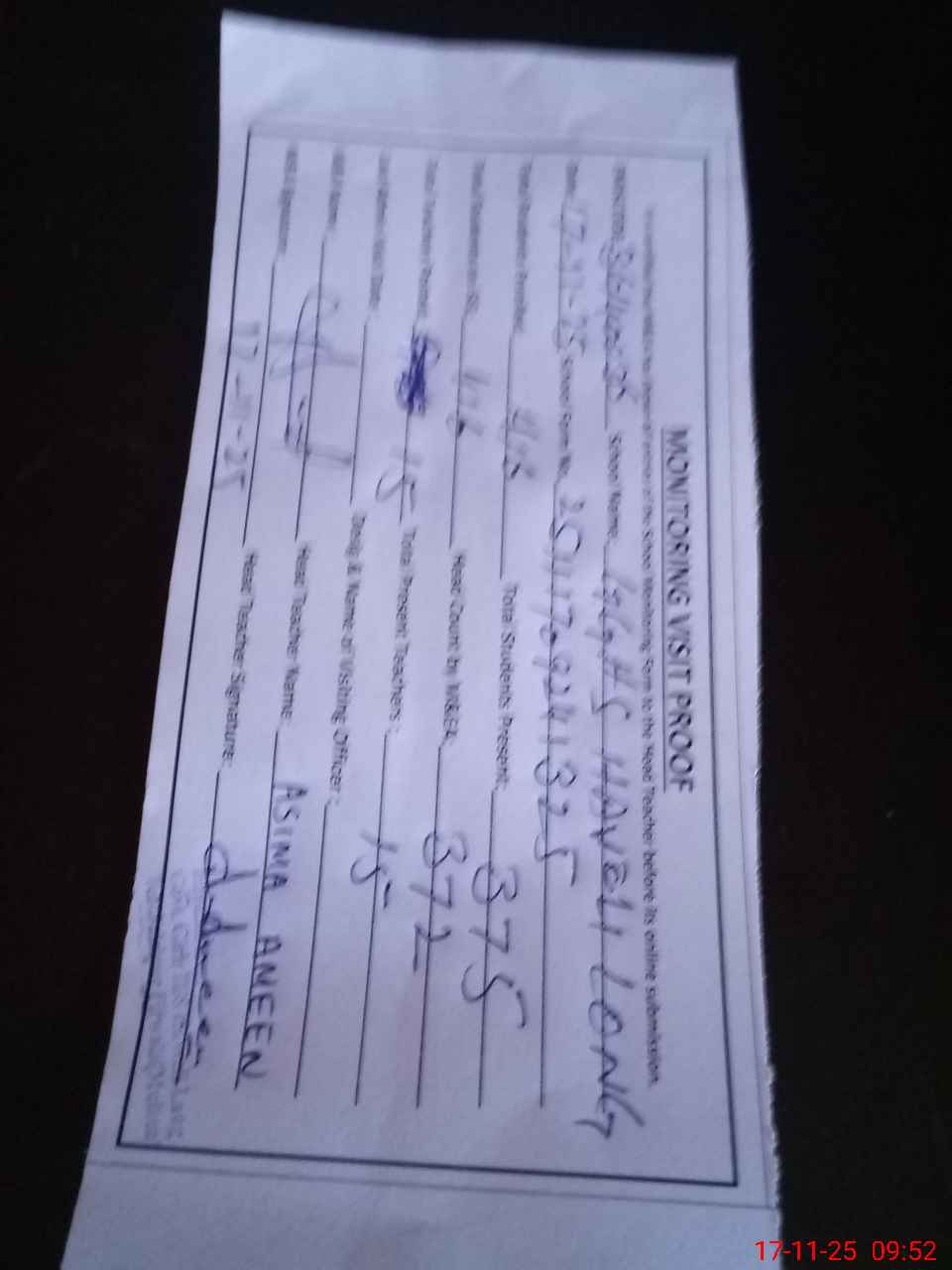 | Certified that this School was Inspected by the Undersigned MEA/DMO Today and the Information Stated Above is as Per Record. | |||||