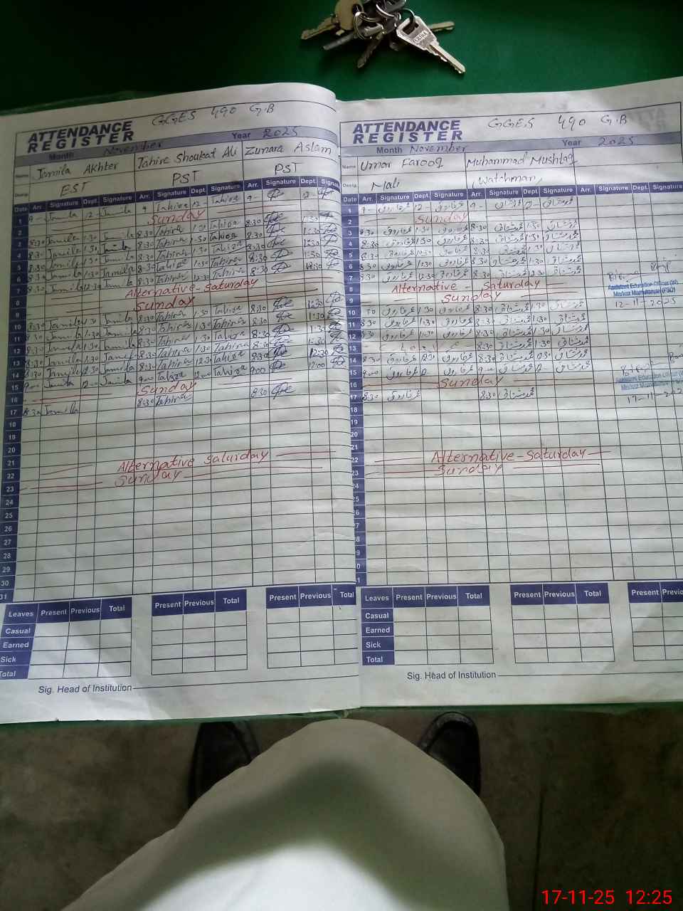| CNIC | Full Name | Designation | R/C | Absence during last cal. month |