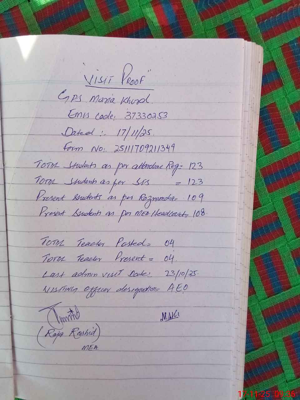 | EMIS Code: 37330253 | Name of School: GPS MAIRA KHURD | |||