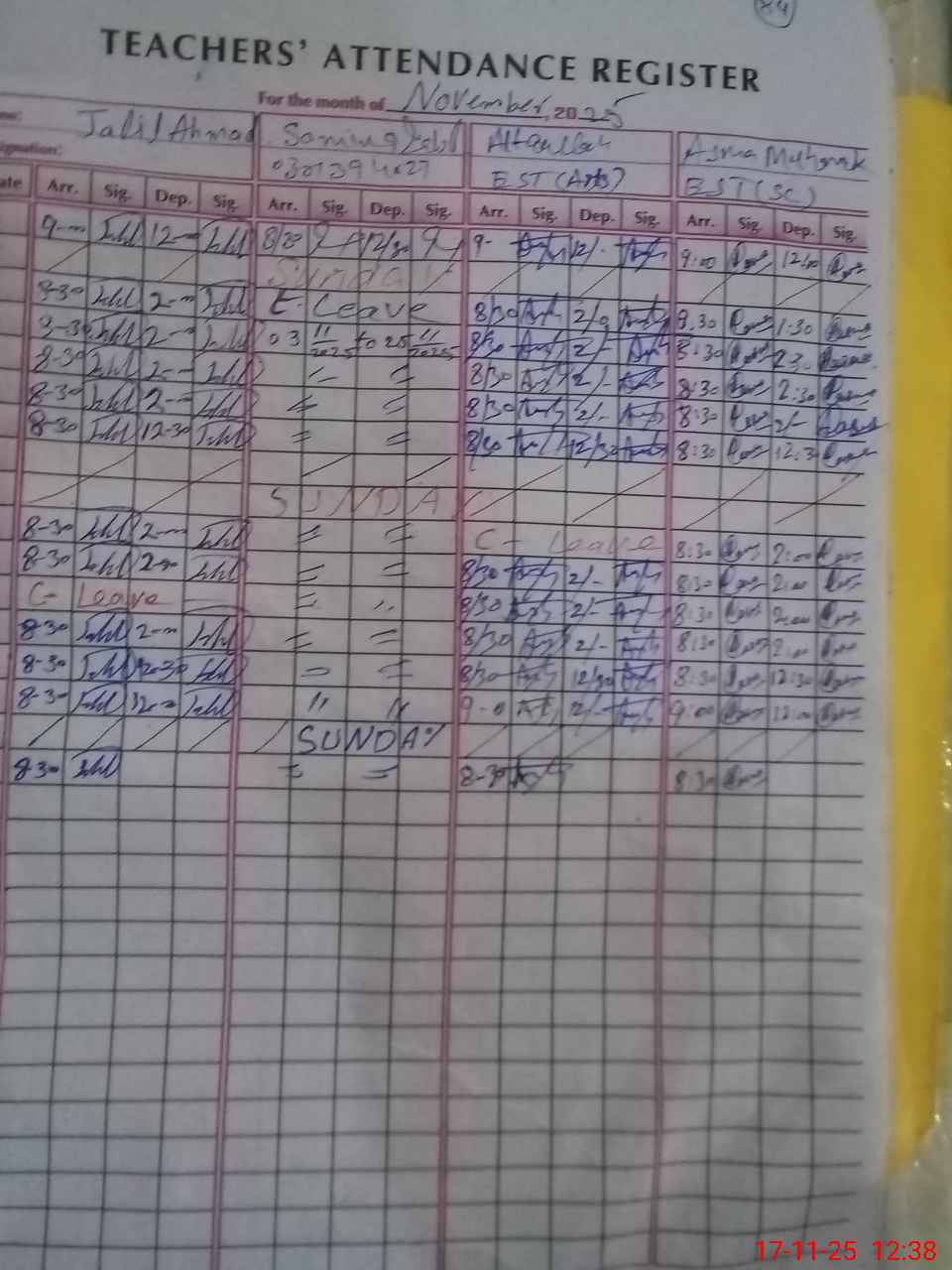 | CNIC | Full Name | Designation | R/C | Absence During Last Calender Month |