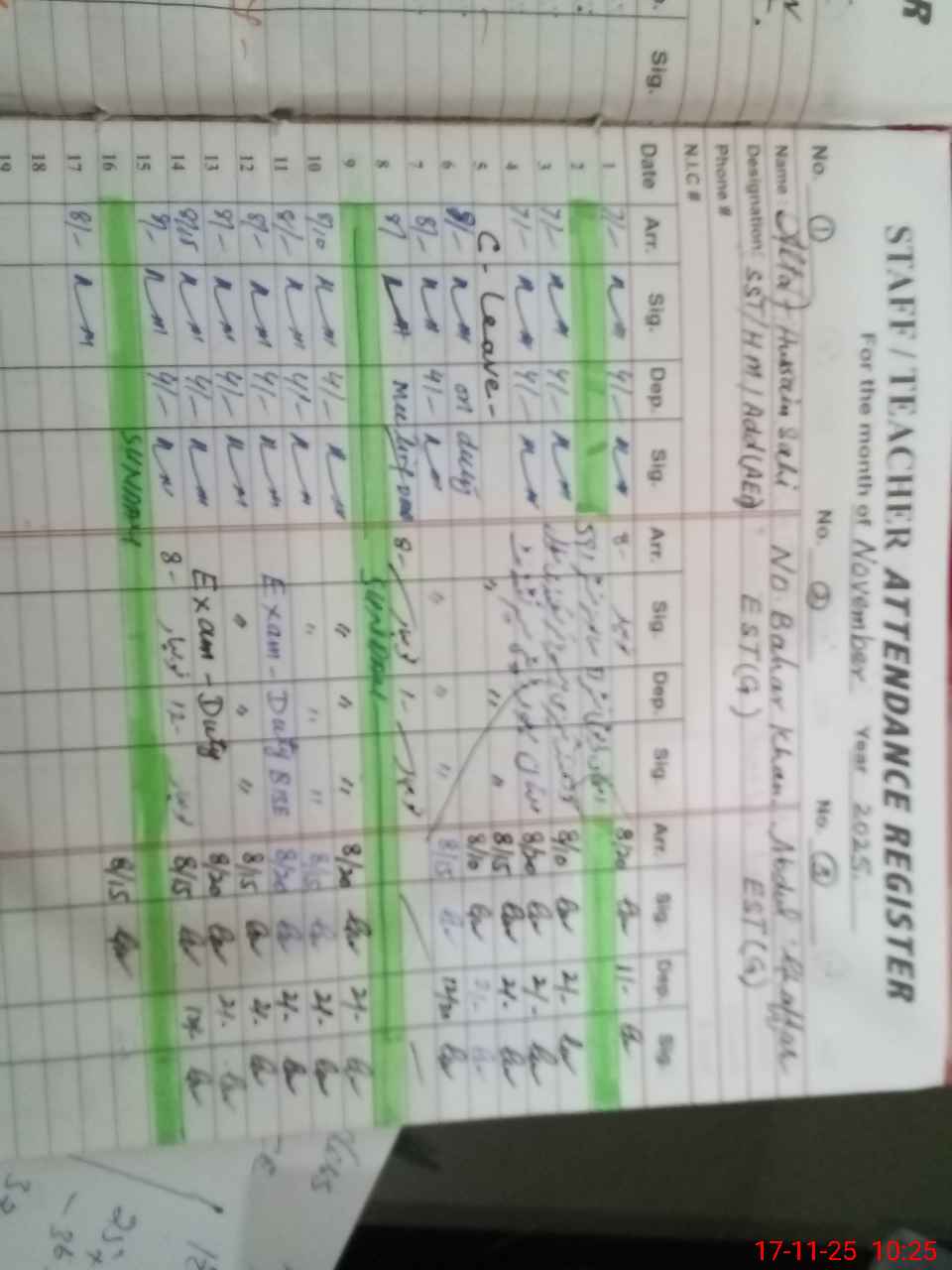 | 36**** | NoBa**** Kh**** | ESE General Arts | Regular | 0 | 0 | 0 | 0 | 0 | 0 | 0 | 0 | 0 | Exam Duty |