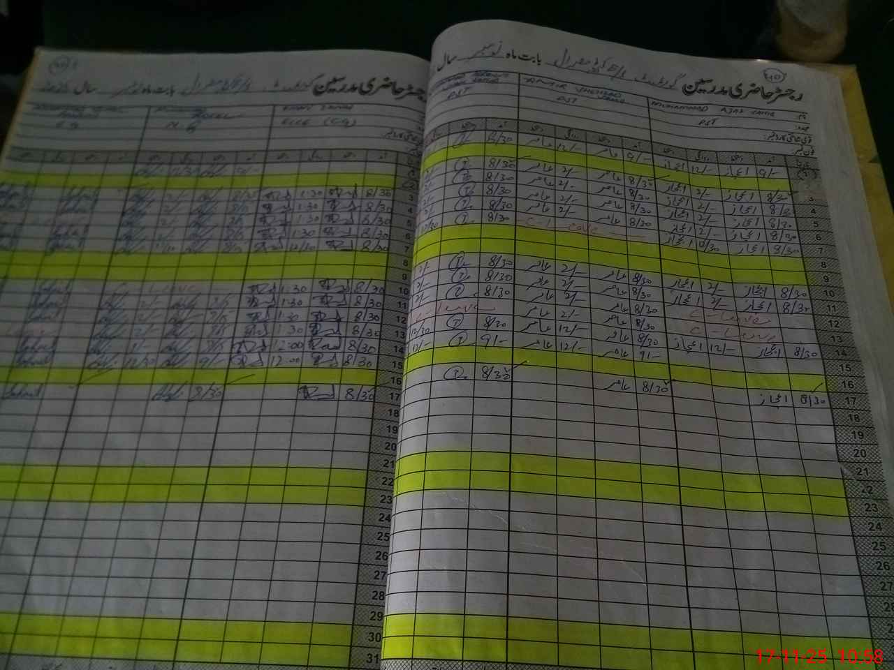 | CNIC | Full Name | Designation | R/C | Absence During Last Calender Month |