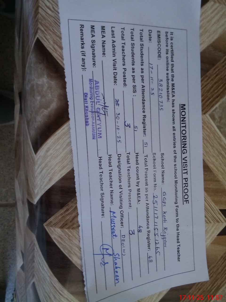 | EMIS Code: 38210735 | Name of School: GGPS KOTLI RAJGAN | |||