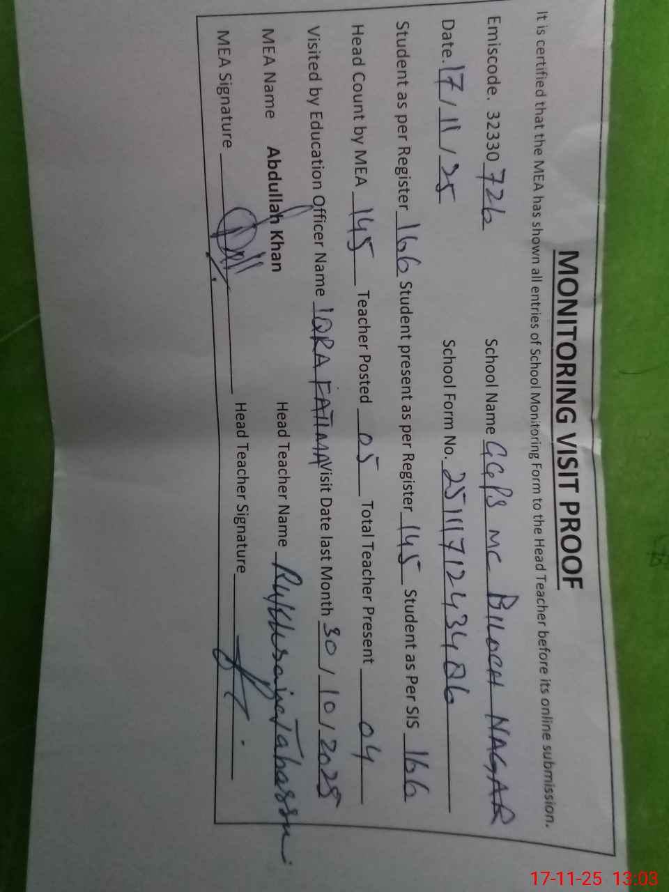 | EMIS Code: 32330726 | Name of School: GGPS MC BILOCH NAGAR | |||