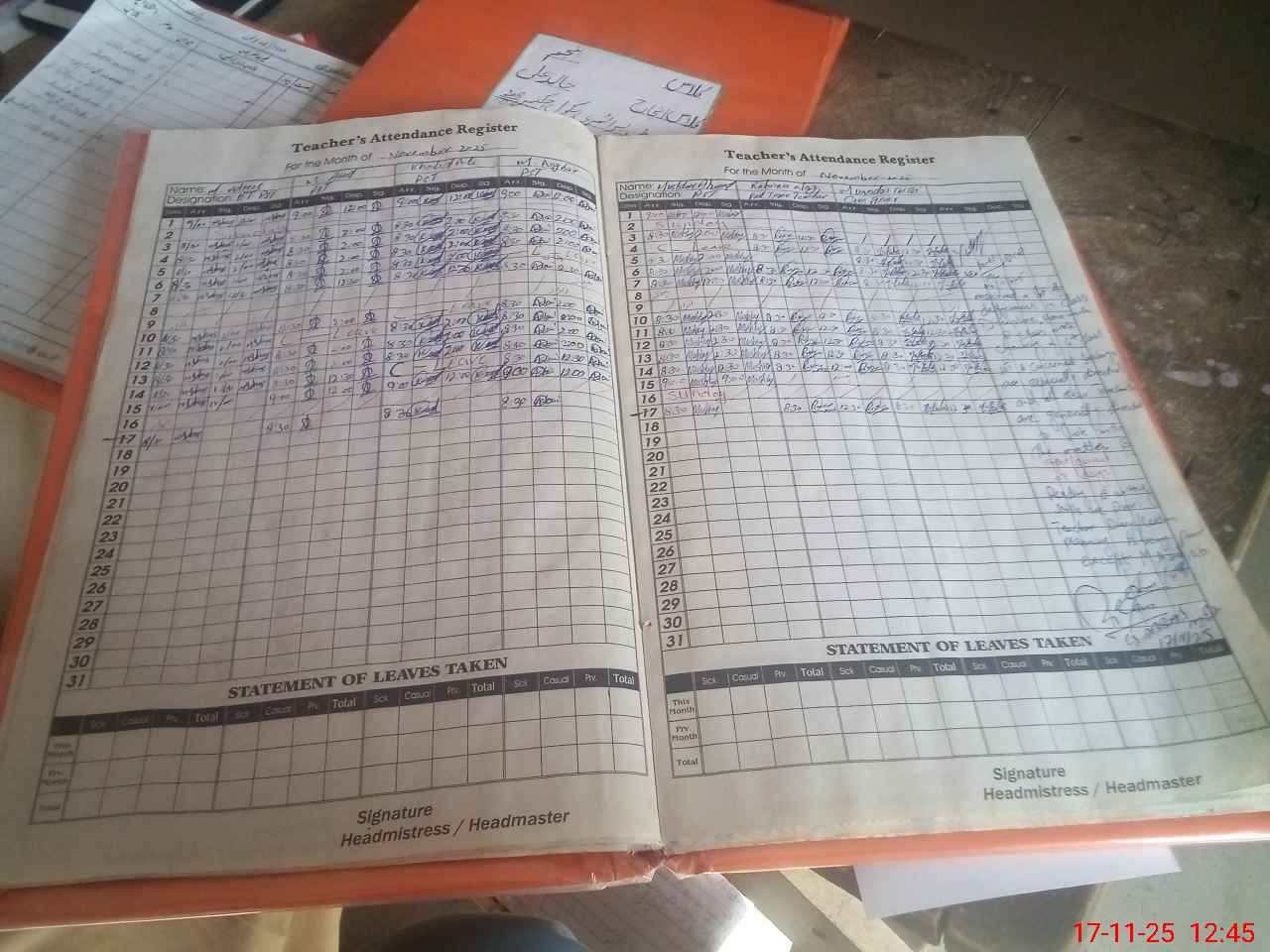 | Remarks (Use Separate Page if Required): Last seen by Name Yasir wazir Designation AEO Date 04 Nov 2025 | |||||
