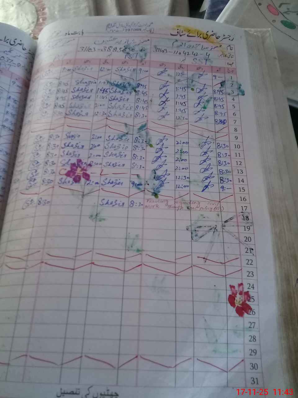 | CNIC | Full Name | Designation | R/C | Absence during last cal. month |
