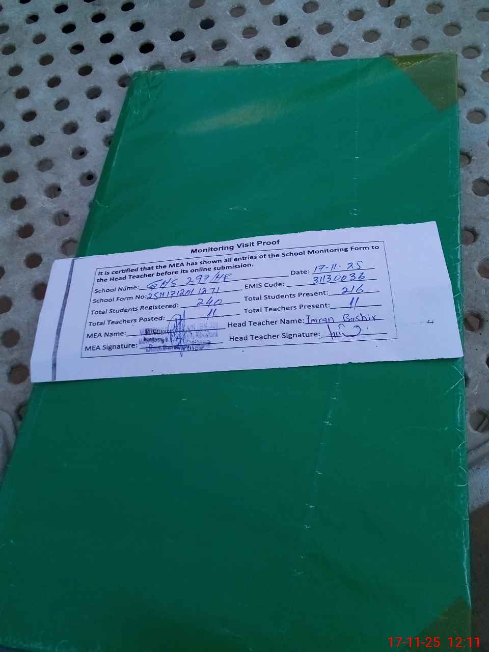 | EMIS Code: 31130036 | Name of School: GHS CHAK 297/HR | |||
