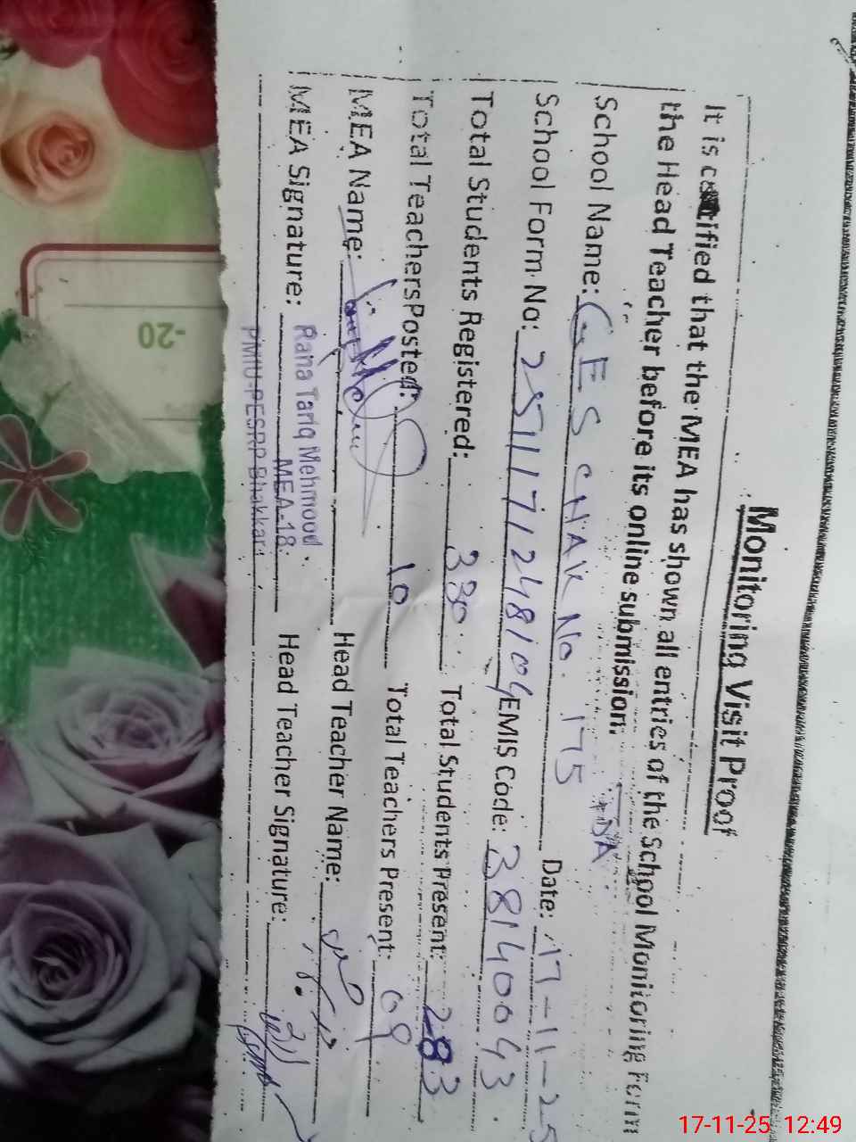 | Certified that this School was Inspected by the Undersigned MEA/DMO Today and the Information Stated Above is as Per Record. | |||||
