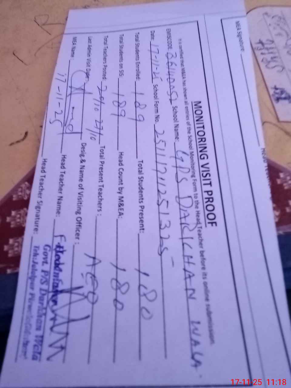 | EMIS Code: 36140052 | Name of School: GPS DARKHAN WALA | |||