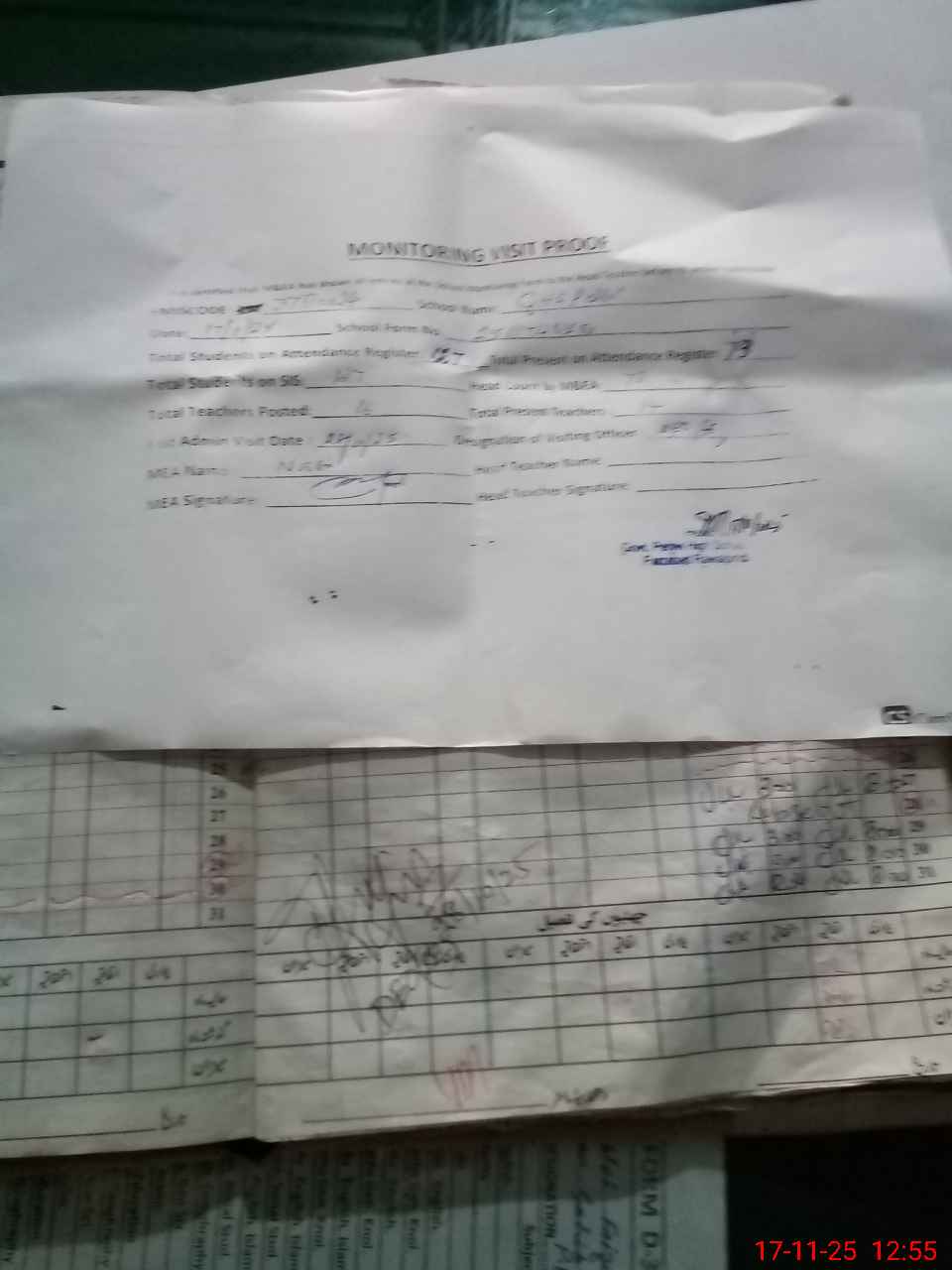| Attendance Register | Head Teacher | MEA with School | Visit Proof |