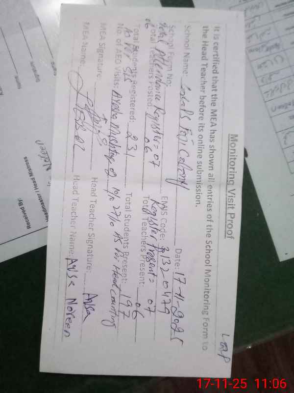 | EMIS Code: 31320479 | Name of School: GGPS FOJI COLONY | |||