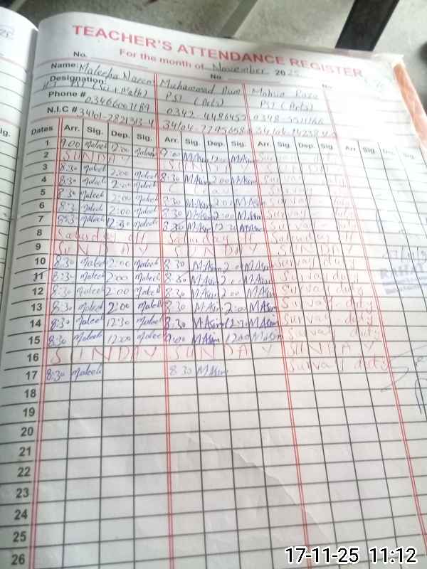 | Name: MA**** NA**** Designation: (School Headmaster's/Headmistress's) PST Phone/Cell Number: 03**** |