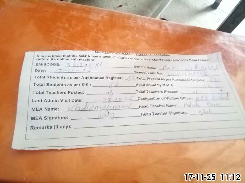 | EMIS Code: 34120581 | Name of School: GPS KOT DAVAL | |||
