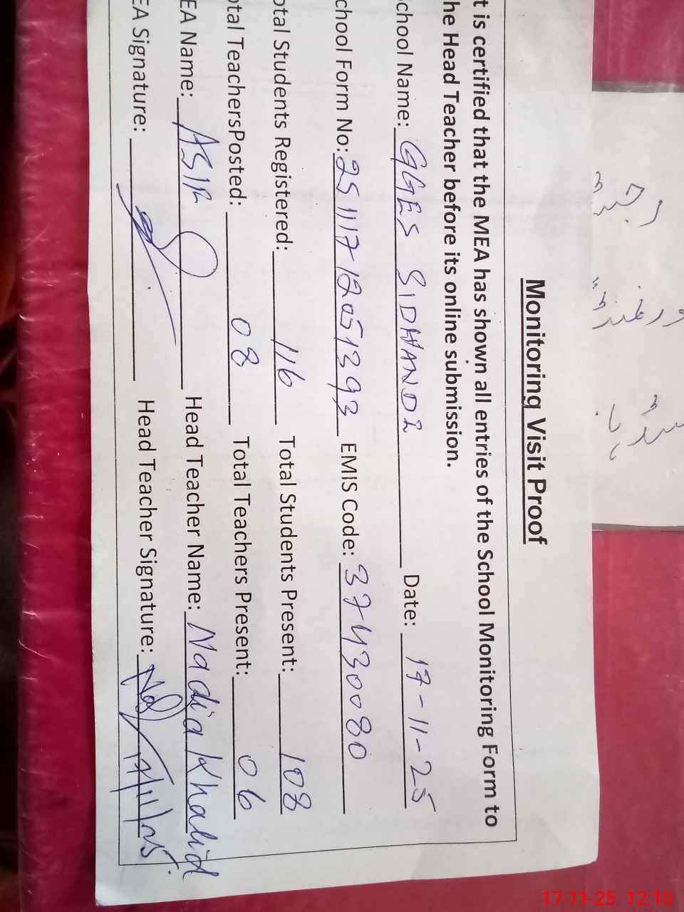 | EMIS Code: 37430080 | Name of School: GGES SIDHANDI | |||