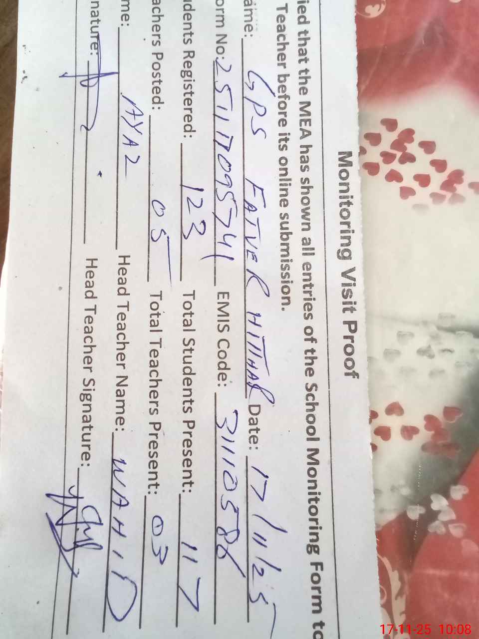 | EMIS Code: 31110586 | Name of School: GPS FATVERA HITHAR | |||