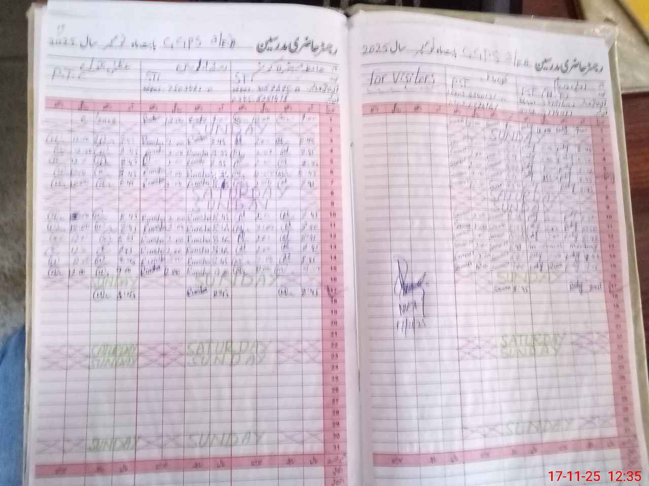 | Remarks (Use Separate Page if Required): Books record D 4 incomplete Sti mubashra sti Rimsha Noreen present in this school | |||||