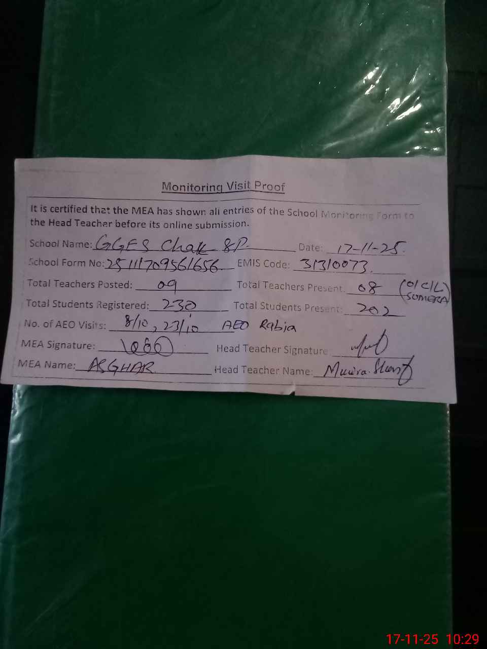 | EMIS Code: 31310073 | Name of School: GGES CHAK NO. 8/P | |||