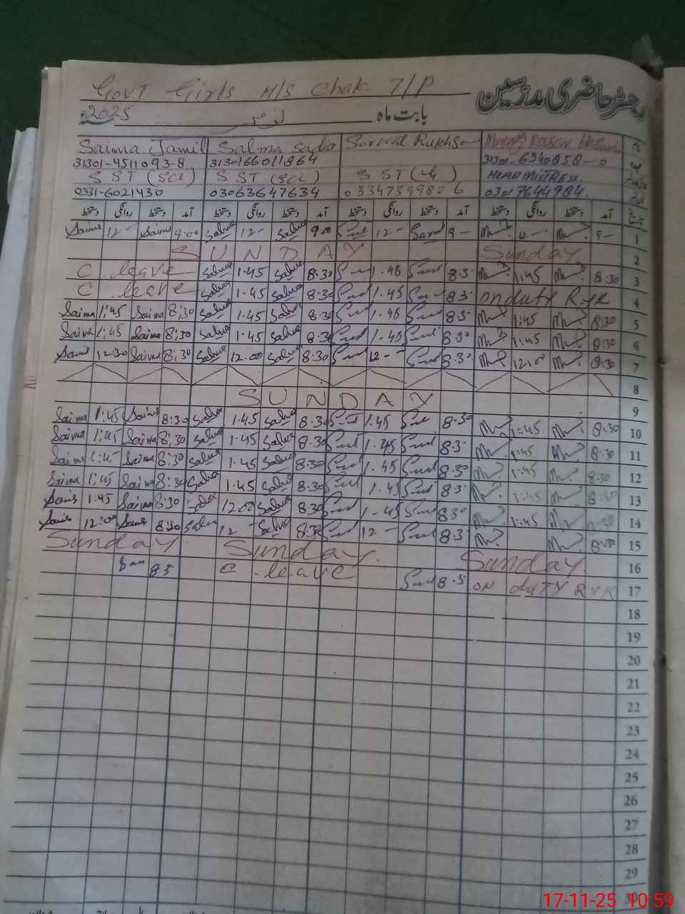 | Name: Sa**** Ru**** Designation: (School Headmaster's/Headmistress's) Head Mistress Phone/Cell Number: 03**** |