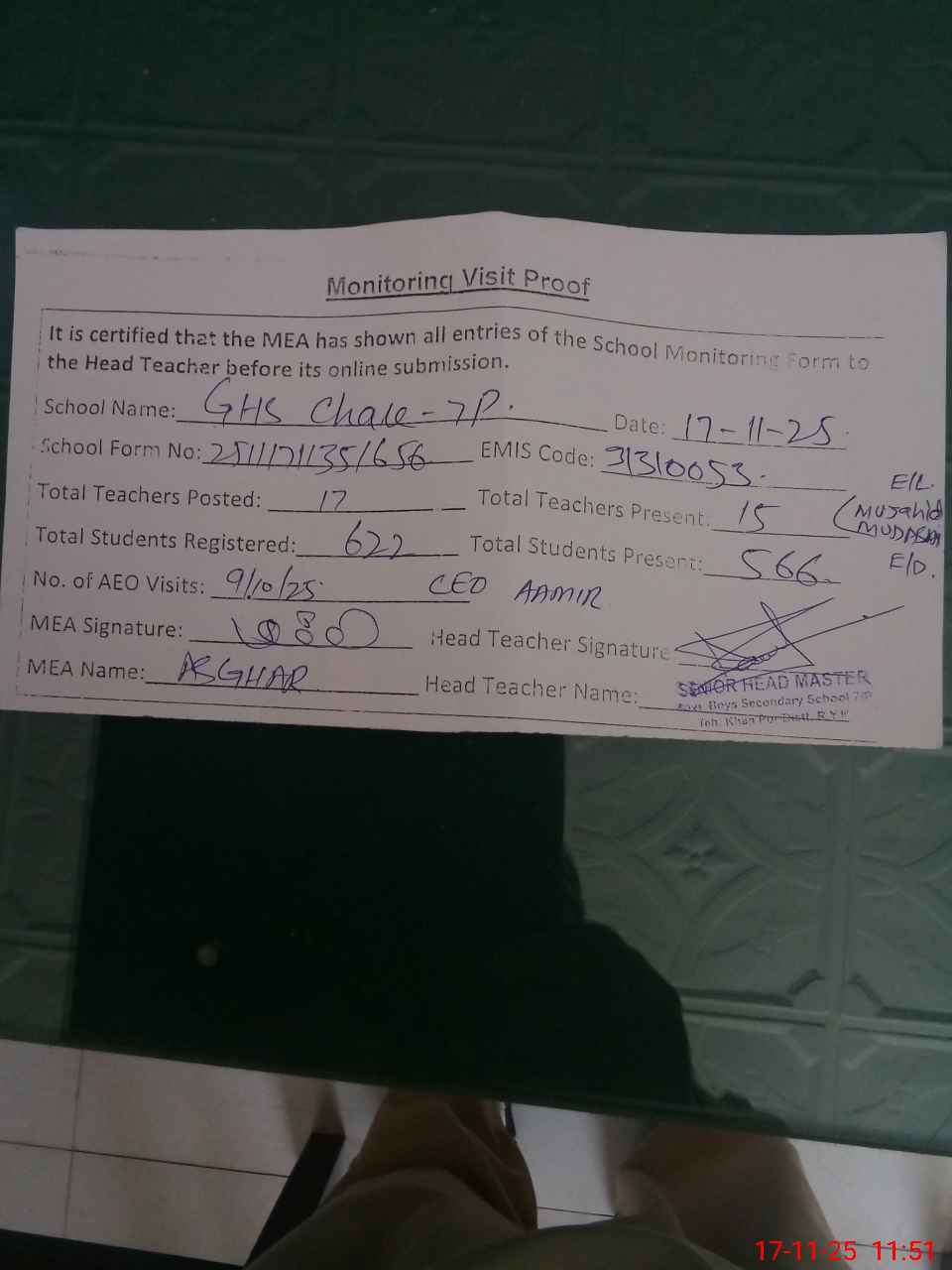 | EMIS Code: 31310053 | Name of School: GHS CHAK NO 7/P KHANPUR | |||