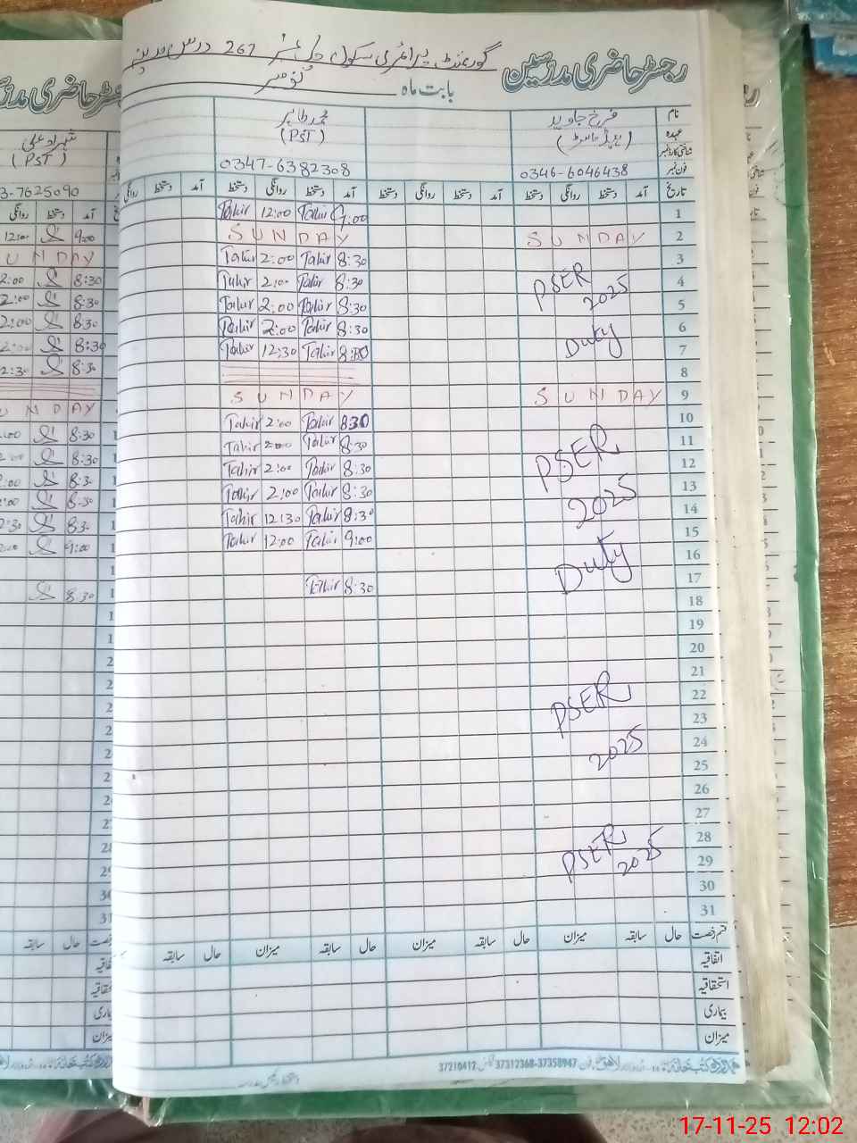 | Name: FA**** JA**** Designation: (School Headmaster's/Headmistress's) PST Phone/Cell Number: 03**** |
