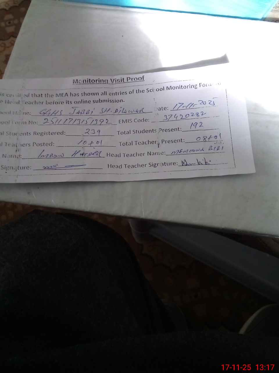 | EMIS Code: 37420282 | Name of School: GGHS JABBI SHAH DILAWAR | |||