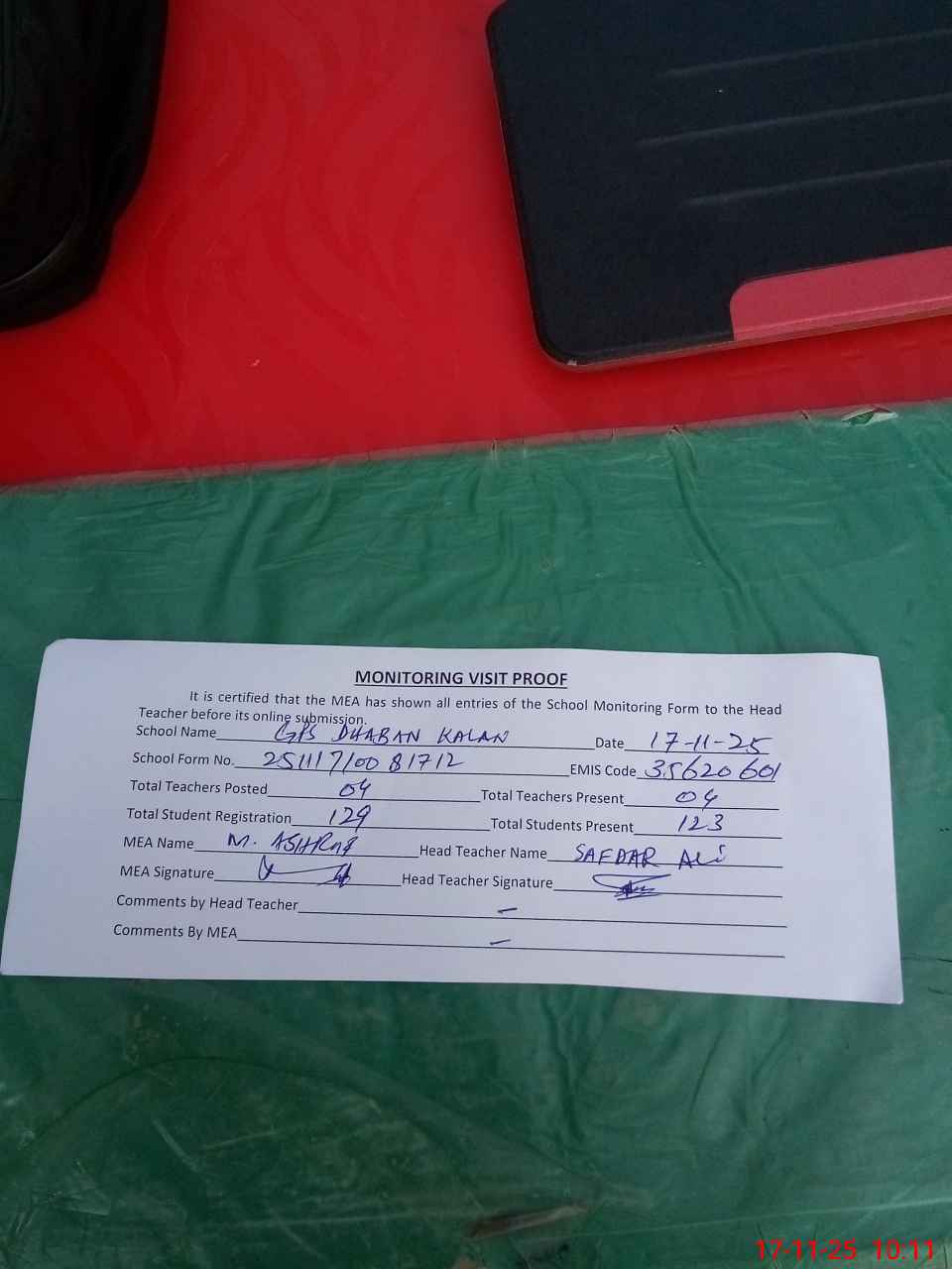 | EMIS Code: 35620601 | Name of School: GPS DHABAN KALAN CHAK NO.13/RB | |||