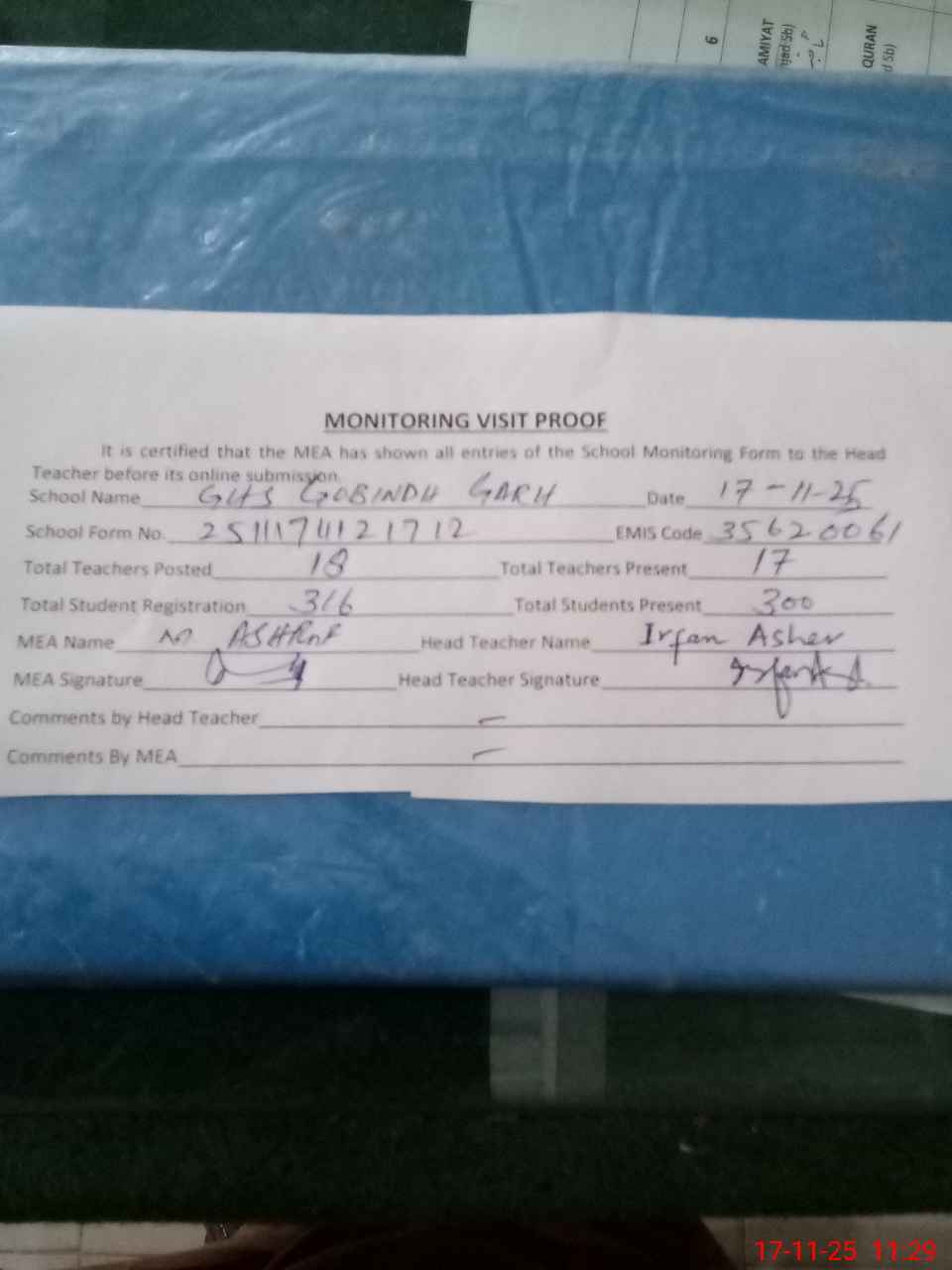 | EMIS Code: 35620061 | Name of School: GHS GOBIND GARH 12 RB | |||
