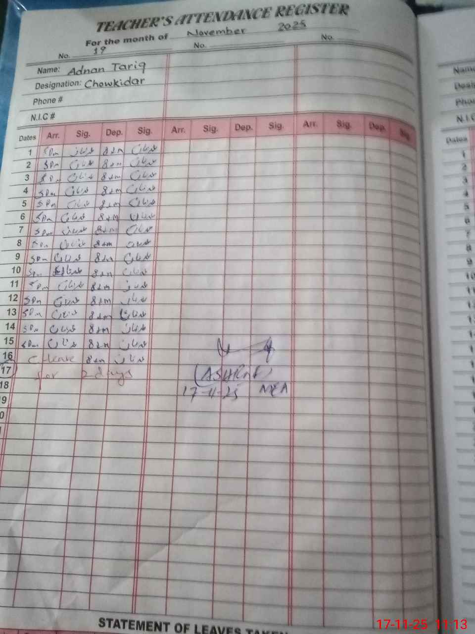 | 35**** | Ad**** Ta**** | CHOKIDAR | Regular | 0 | 0 | 0 | 0 | 0 | 0 | 0 | 0 | 0 | Casual |
