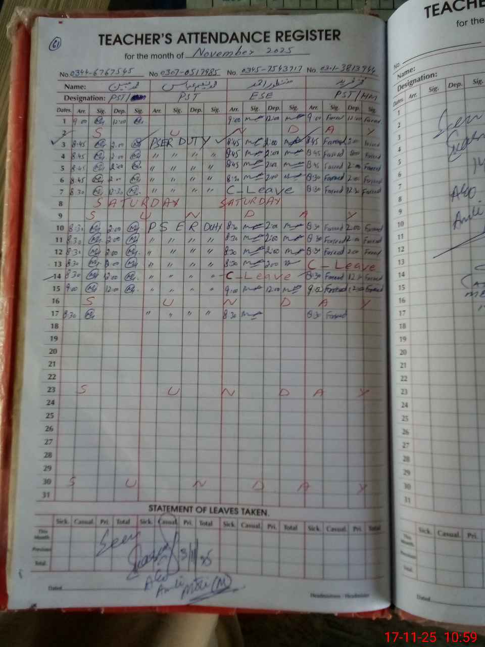 | Name: Mu**** Mo**** Designation: (School Headmaster's/Headmistress's) PST Phone/Cell Number: 03**** |
