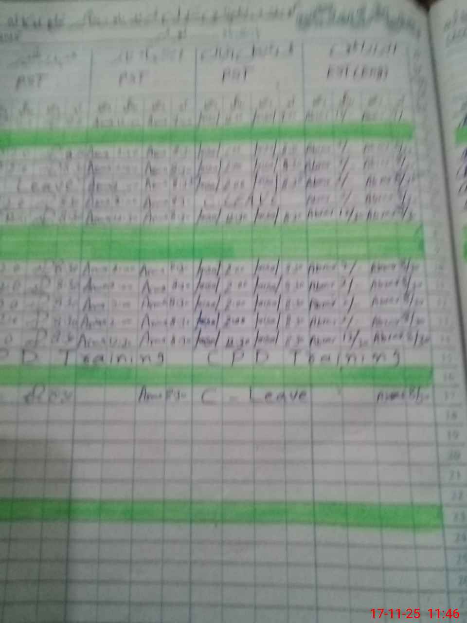 | Leave | Duty | Absent | Maternity | Medical | Ex- Pak |