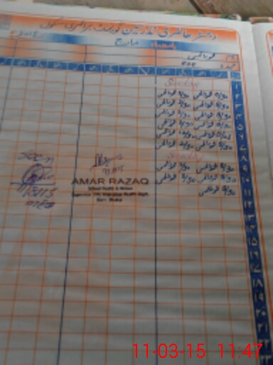 | School Visited by School Health & Nutrition Supervisor (No. of Visits) | 1 | Name1: | Ammar Razzaq | Name2: | |